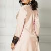 Silky feeling Charmeuse and black Eyelash Lace mid length SHORT ROBE with  wrap front inner tie as well as outer tie.   The chemise (model 31511) is not included but can be purchase separately to make the ultimate Pegnoir Set. Also available in other colours and plus sizes, please see related products.