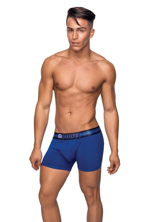 Pouch Short, moderate, mid cut leg, fictional pouch pocket, sleek gradient waistband