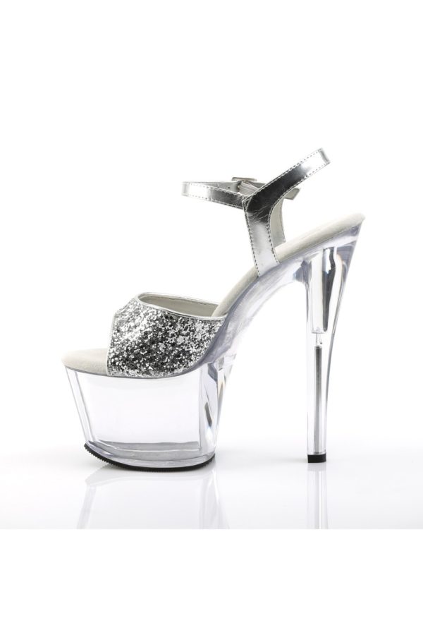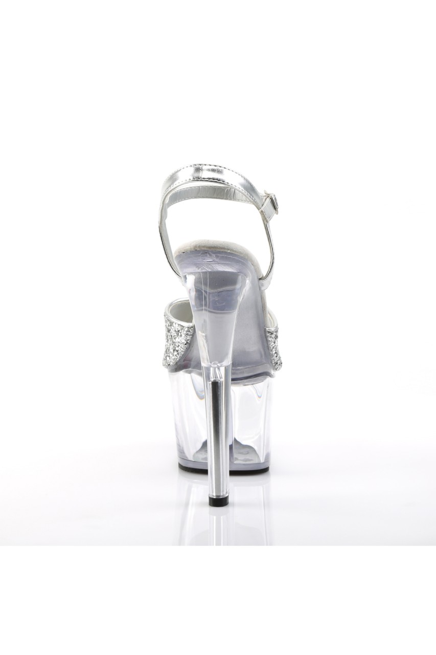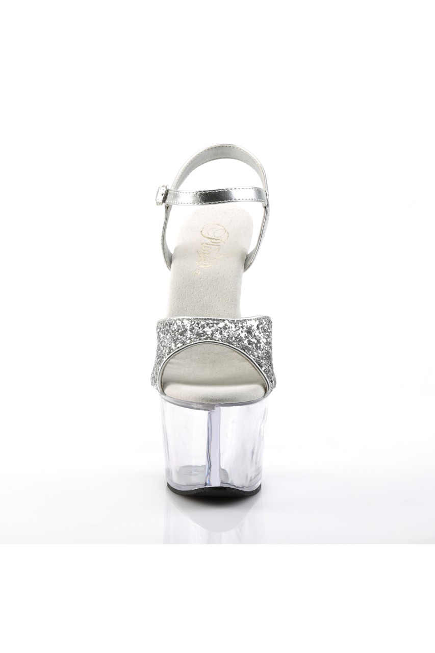 7″” (17.8cm) Heel, 2 3/4″” (7cm) Platform Ankle Strap Sandal with Glitter Upper