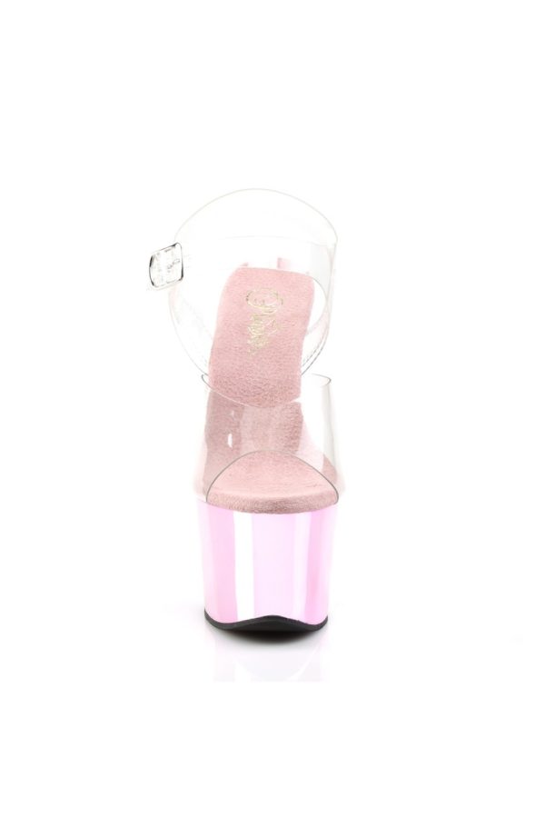7″” (17.8cm) Heel, 2 3/4″” (7cm) Platform Ankle Strap Sandal with Chrome Plated Bottom