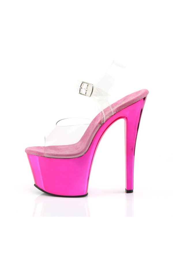 7″” (17.8cm) Heel, 2 3/4″” (7cm) Platform Ankle Strap Sandal with Chrome Plated Bottom