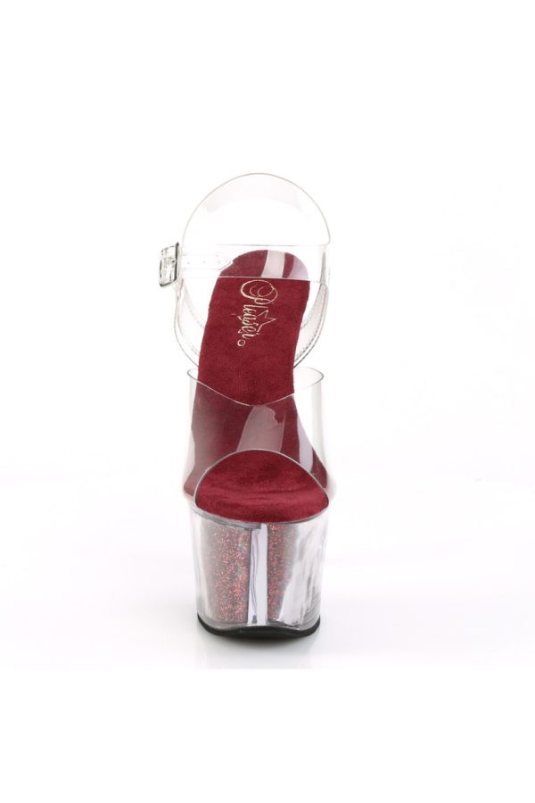 7″” (178mm) Heel, 2 3/4″” (70mm) Platform Ankle Strap Sandal w/ Tinted Heel Featuring Glitter Inserts in the Platform Bottom