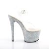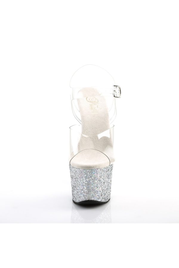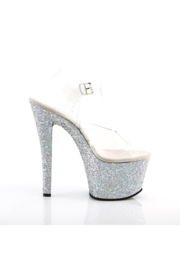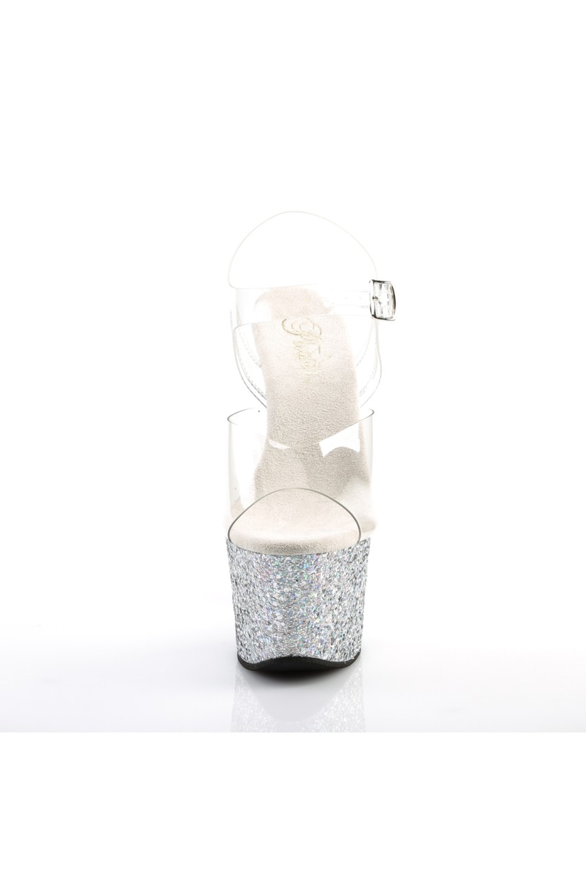 7″” (178mm) Heel, 2 3/4″” (70mm) Platform Ankle Strap Sandal Featuring the Entire Platform Bottom Covered w/ Glitters
