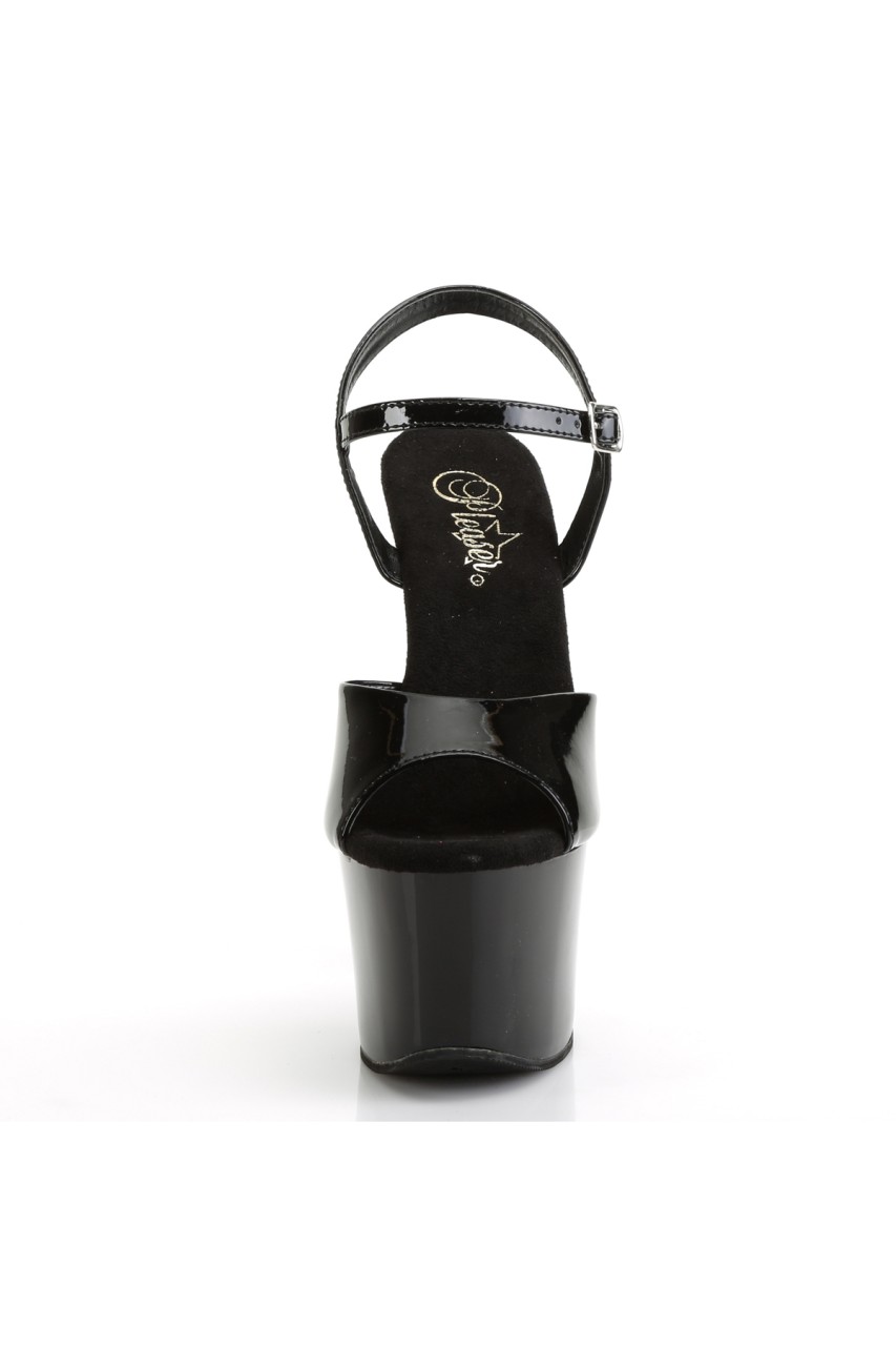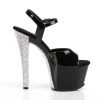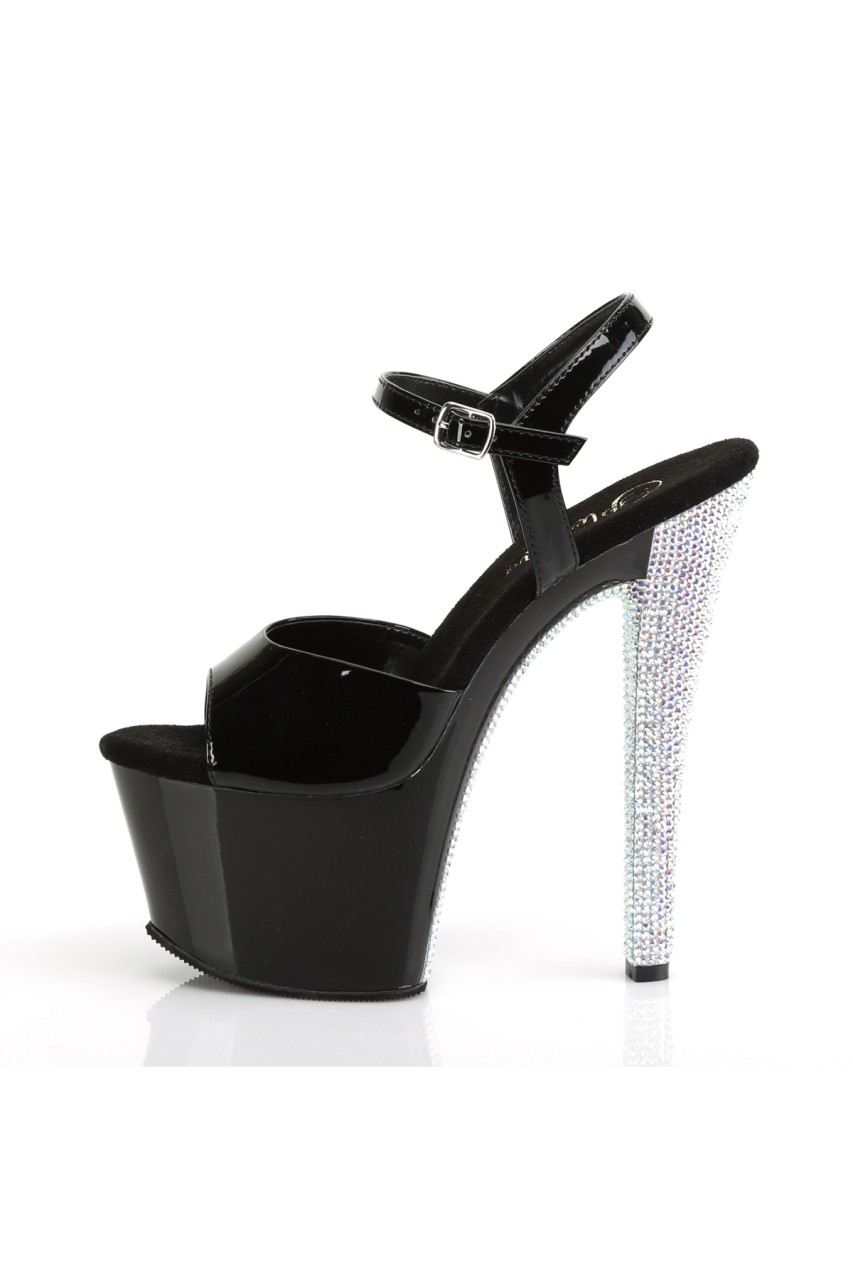 7″” (178mm) Heel, 2 3/4″” (70mm) Platform Ankle Strap Sandal w/ Contrast Rhinestones on the Heel & Platform Bottom