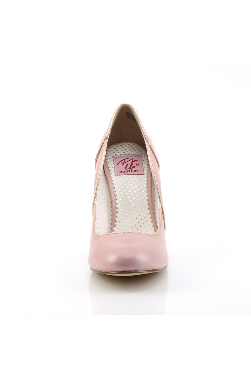 4″” (10.2cm) Thick Heel Pump with Wavy Gold Trim Topline