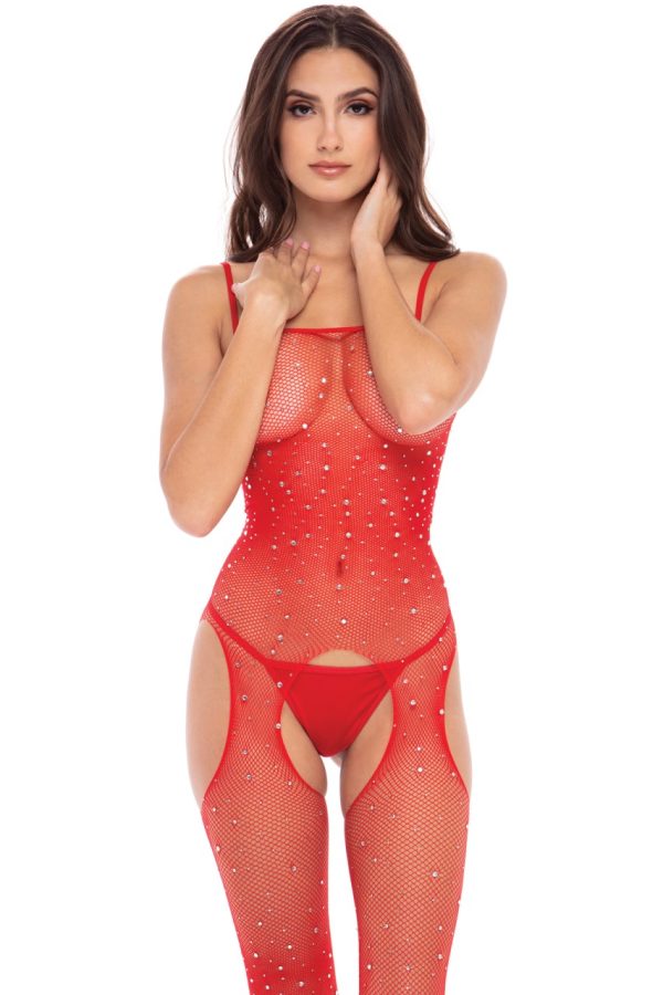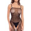 An all over holey design! This plus size bodystocking has three quarter sleeves and arrives packaged in a box. Please note thong is not included.