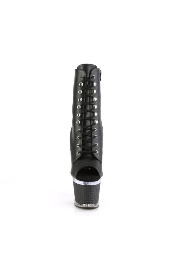 7″” (178mm) Heel, 3″” (76mm) Textured Platform Open Toe Lace-Up Front Ankle Boot, Inner Side Zip Closure