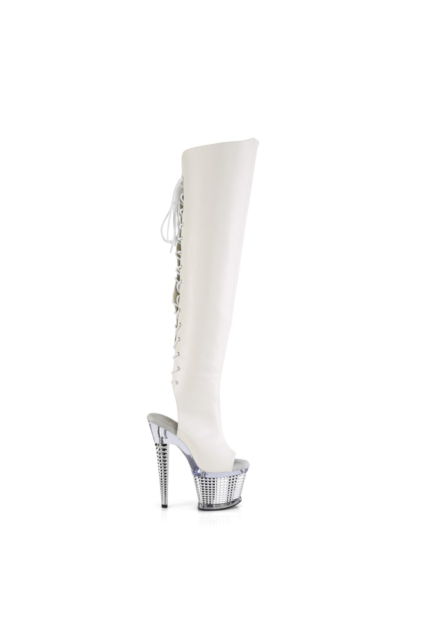 Wht Faux Leather/Clr-Slv Chrome