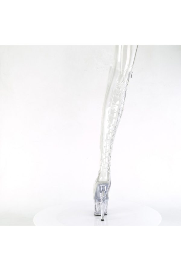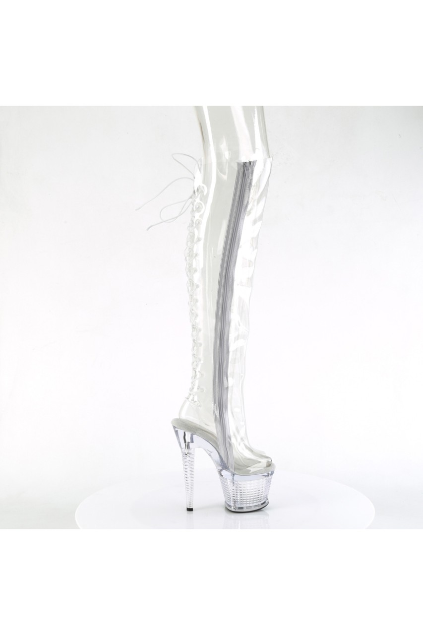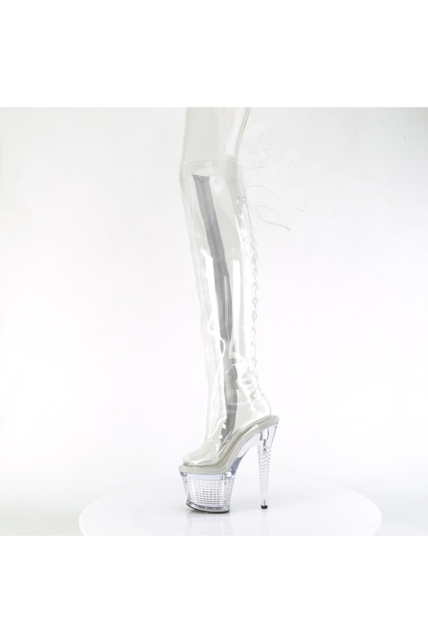7″” (178mm) Heel, 3″” (76mm) Textured PF Open Toe/Heel Lace-Up Back Over-The-Knee Boot, Full-Length Inner Side Zip Closure