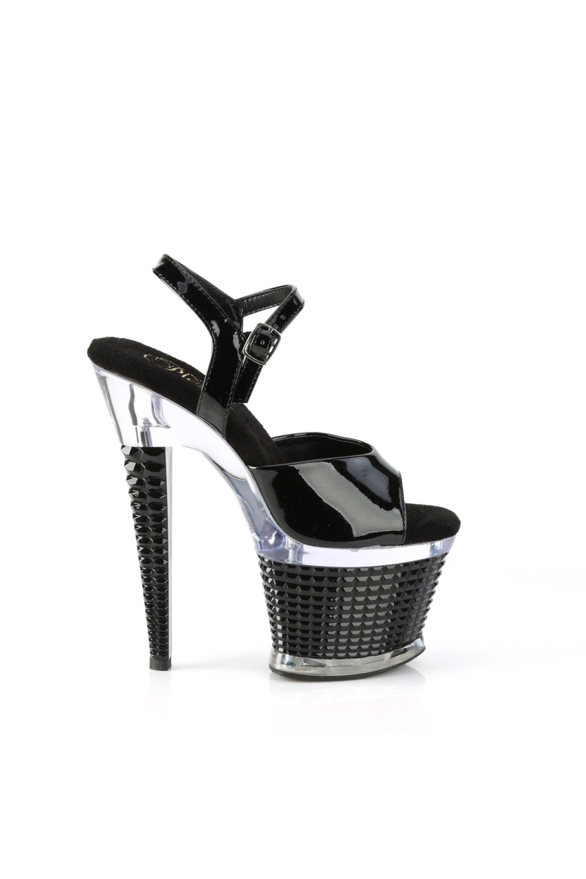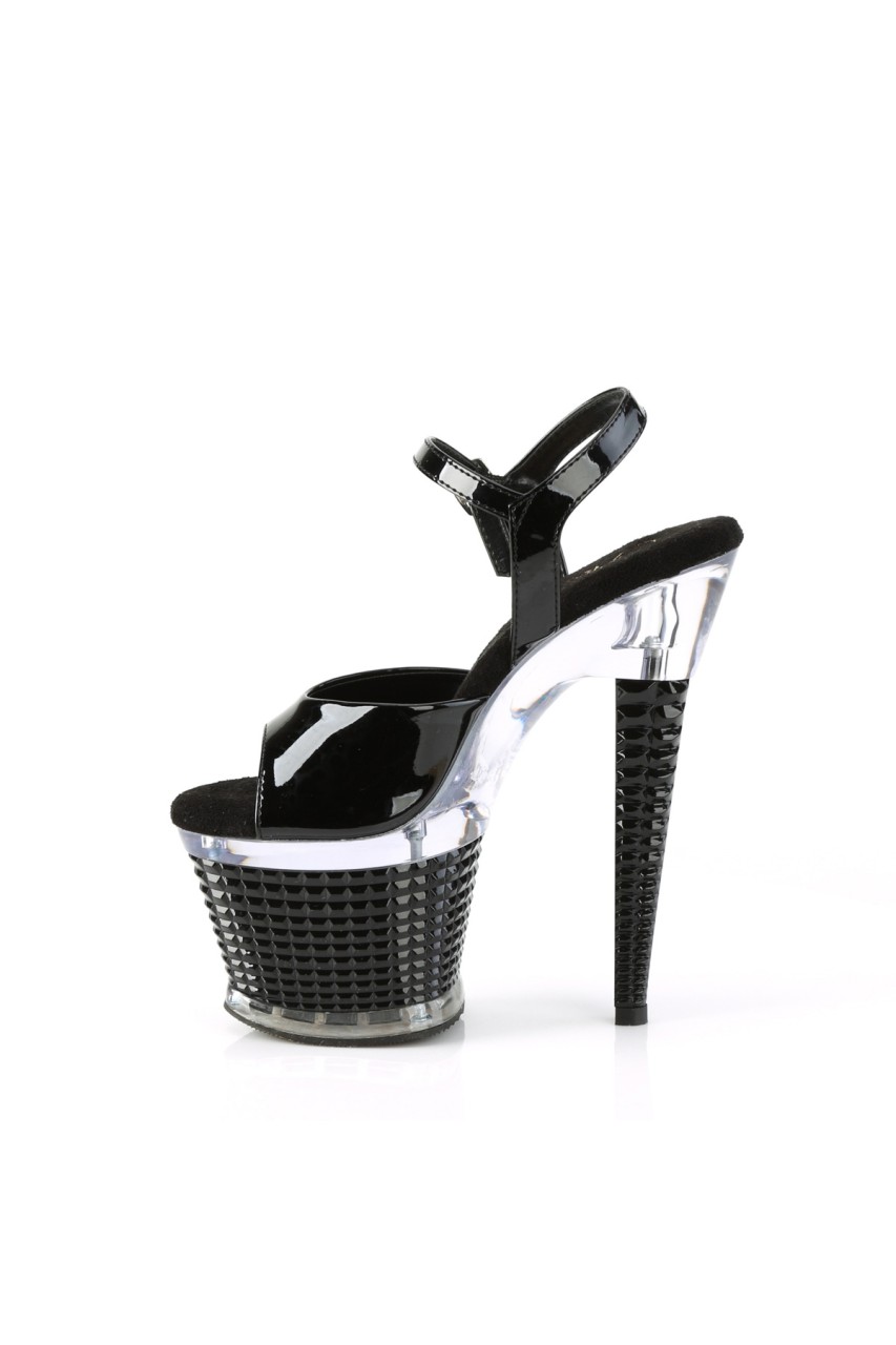 7″” (178mm) Heel, 3″” (76mm) Textured Platform Ankle Strap Sandal