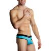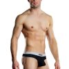 Athletic mesh body with supple nylon waistband and trim, embroidered satin logo label.