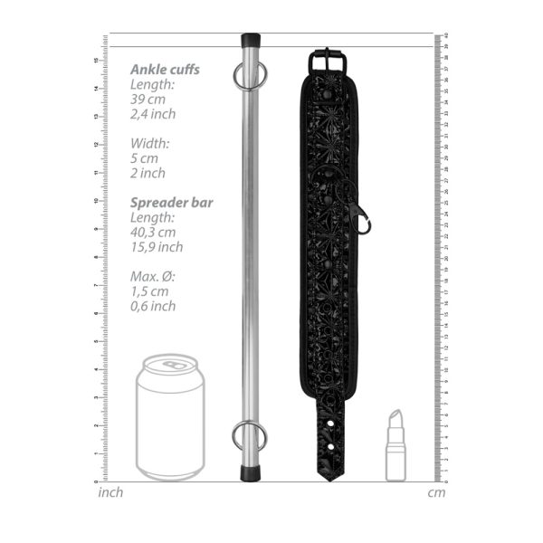 Spread some love as well as your lover’s limbs for uninhibited access to the most intimate areas during erotic play! This sturdy metal spreader bar comes with 2 attached ankle cuffs, made from comfortable neoprene and patent vinyl with a diamond pattern. Product features: