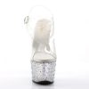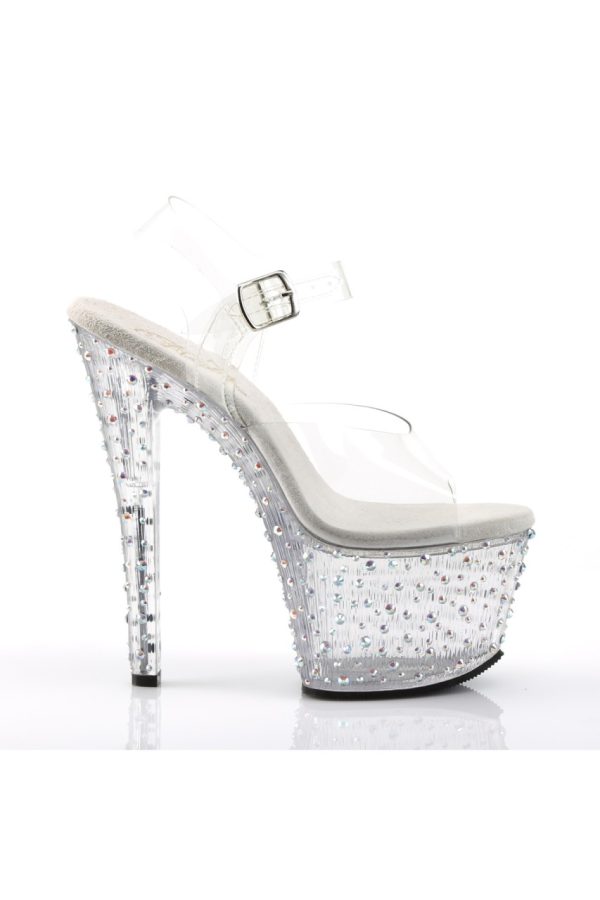 7″” (17.8cm) Heel, 2 3/4″” (7cm) Platform Ankle Strap Sandal Featuring Multi-Size Rhinestones Encrusted on the Bottom