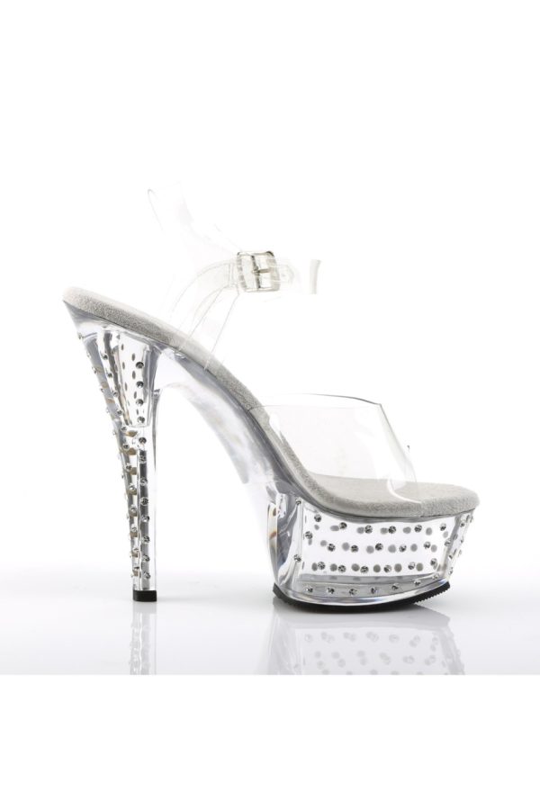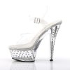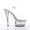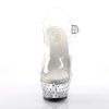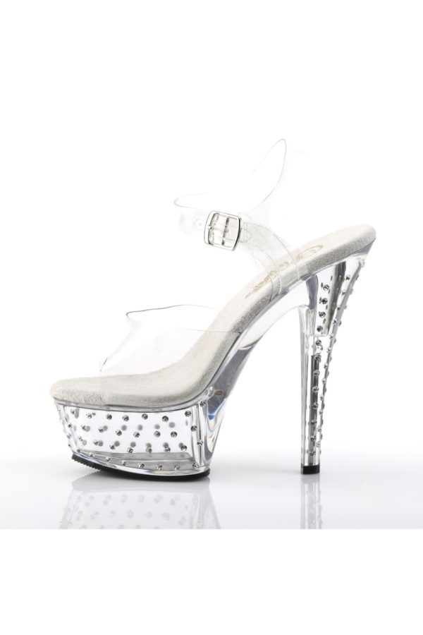 6″” Heel (15.2cm), 1 3/4″” (4.5cm) Platform Ankle Strap Sandal Featuring Rhinestone Studded Platform