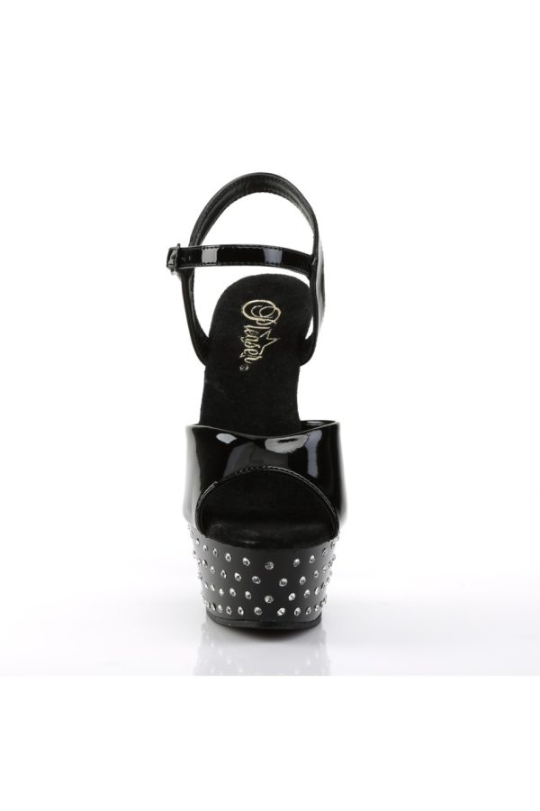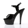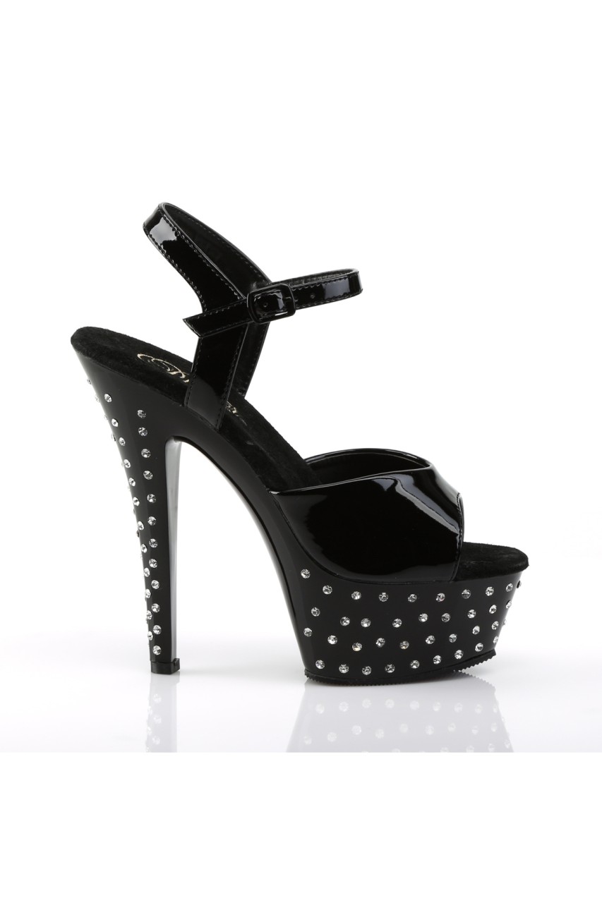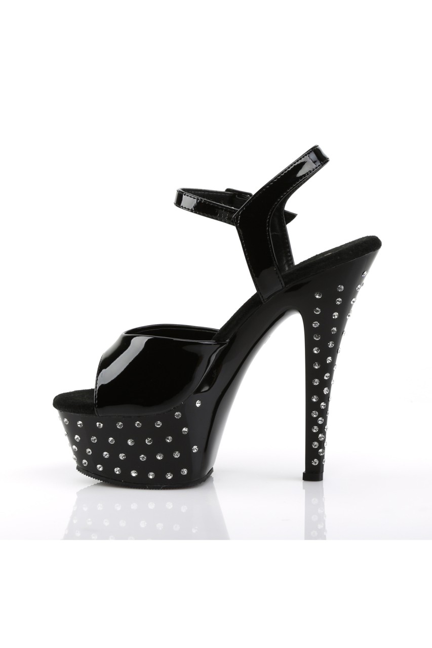 6″” Heel (15.2cm), 1 3/4″” (4.5cm) Platform Ankle Strap Sandal Featuring Rhinestone Studded Platform