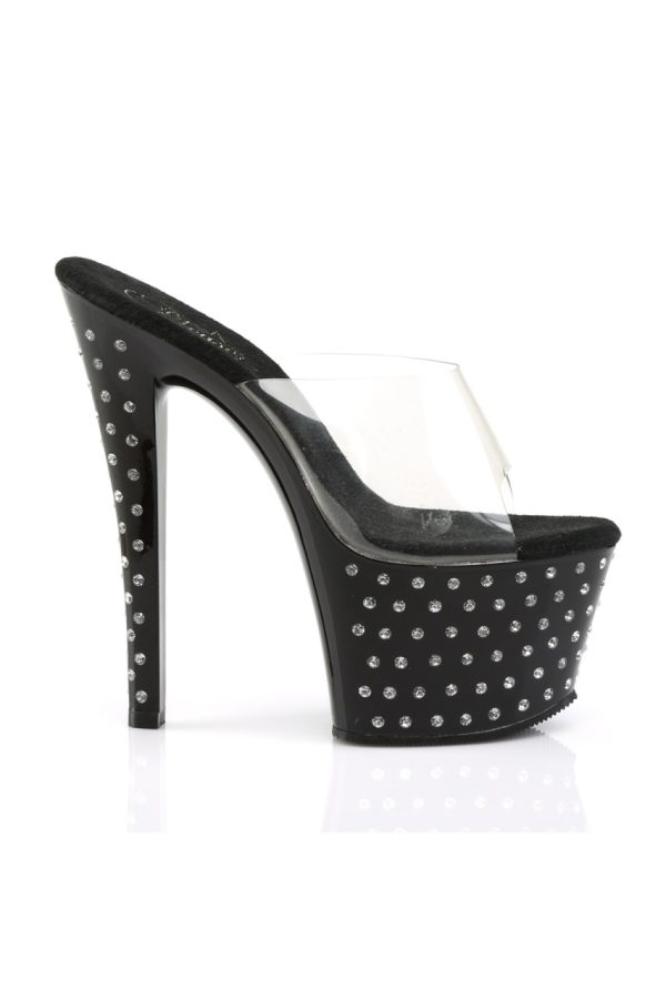 7″” (17.8cm) Heel, 2 3/4″” (7cm) Platform Slide with Rhinestone Studded Platform