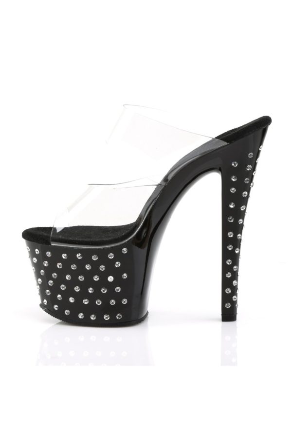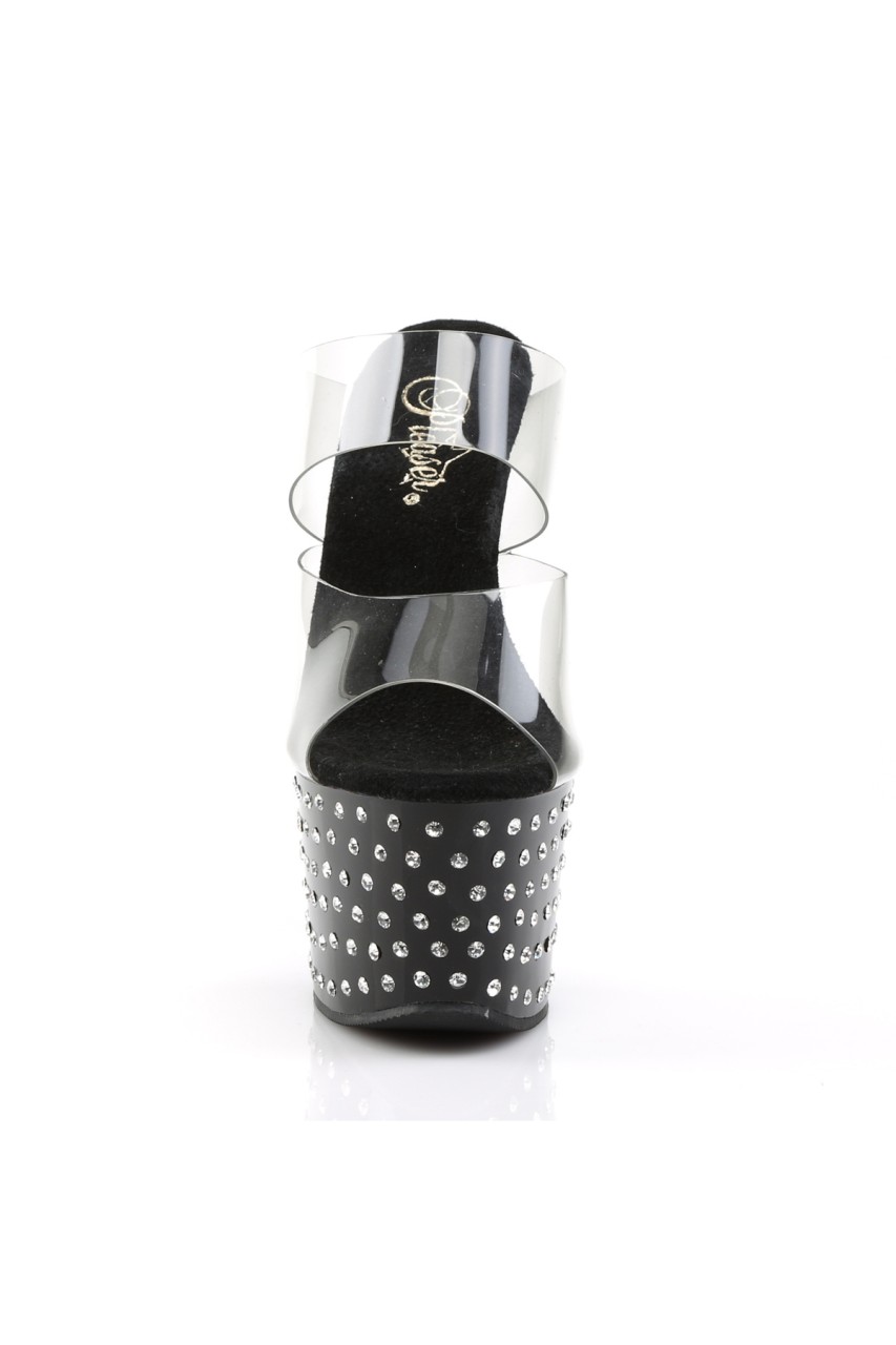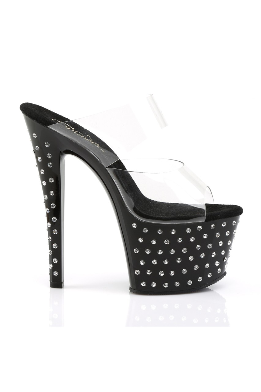 7″” (17.8cm) Heel, 2 3/4″” (7cm) Platform Slide with Rhinestone Studded Platform
