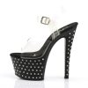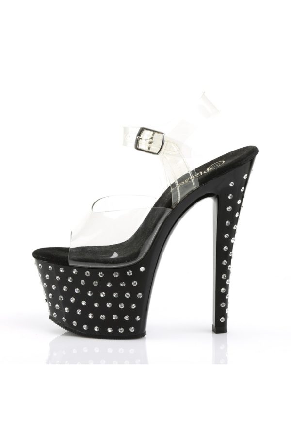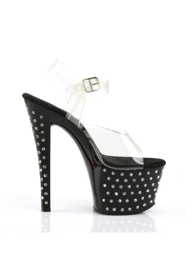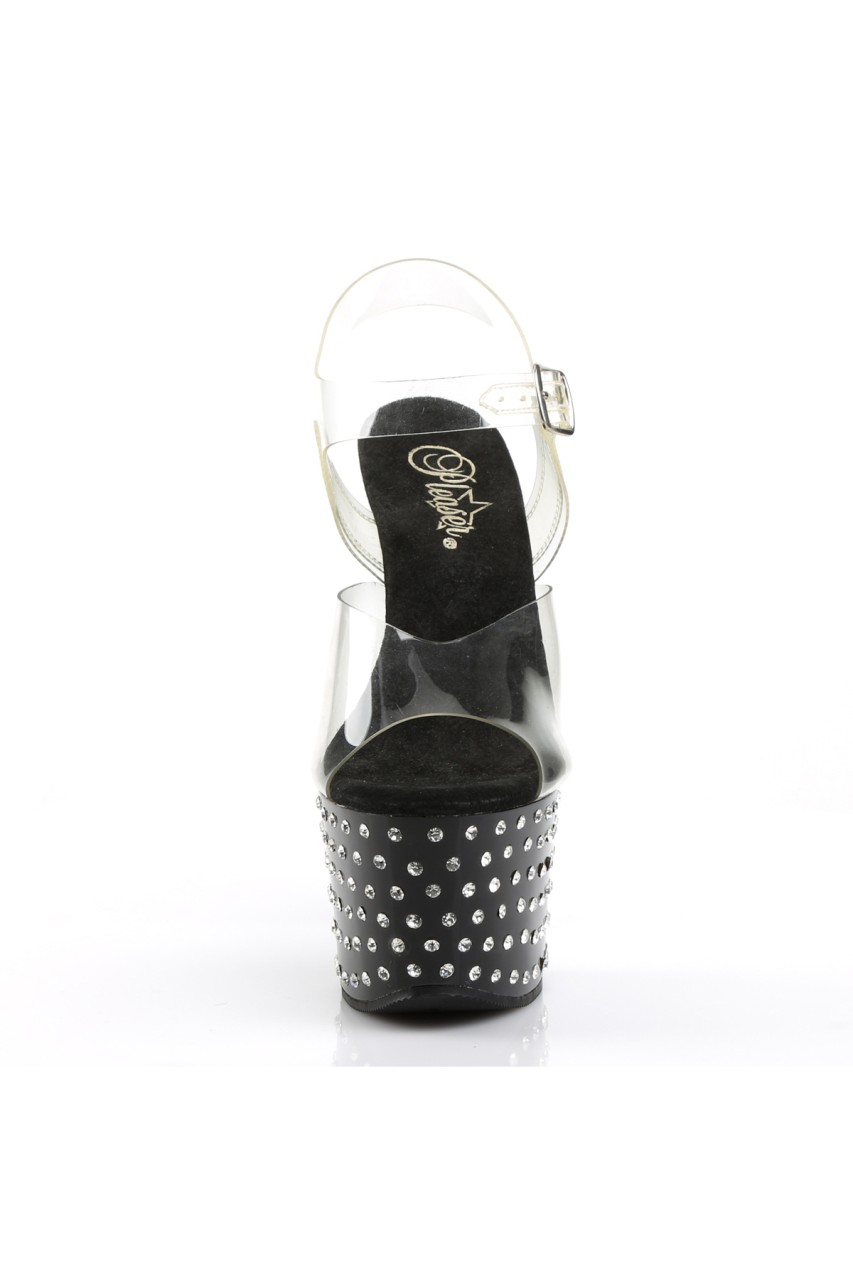 7″” (17.8cm) Heel, 2 3/4″” (7cm) Platform Ankle Strap Sandal Featuring Rhinestone Studded Bottom
