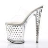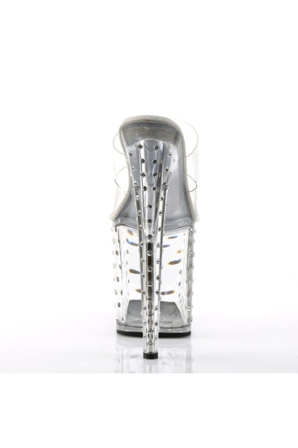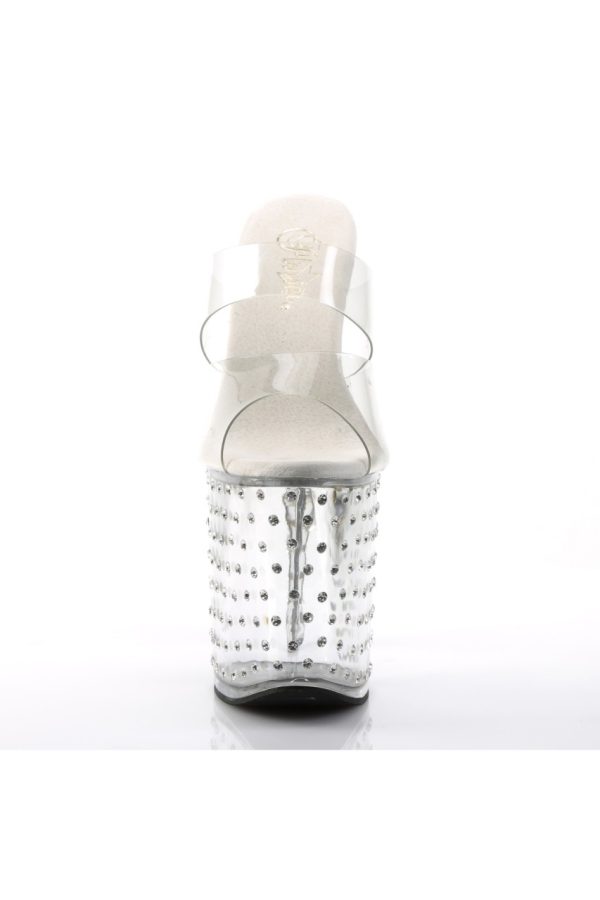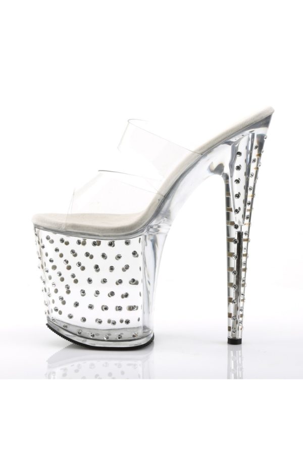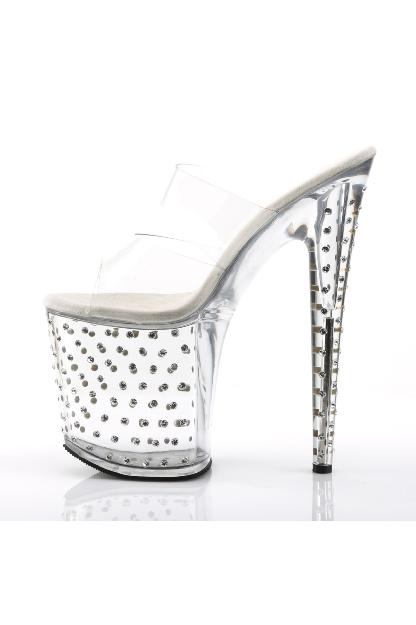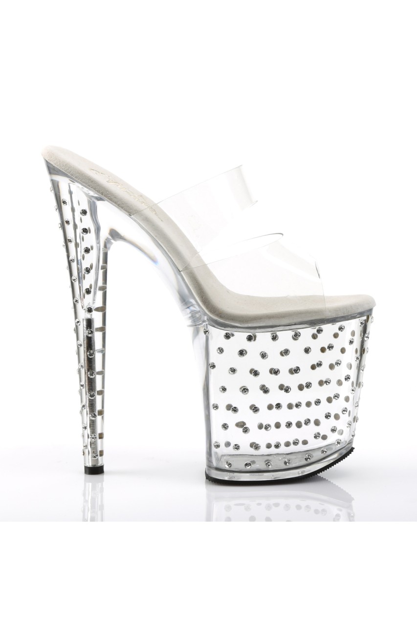 7.5″” (19cm) Heel, 2 3/4″” (7cm) Platform Two Band Slide Featuring Rhinestones Studded Platform