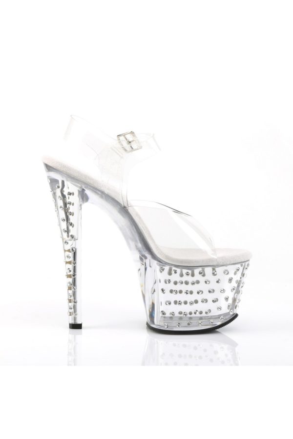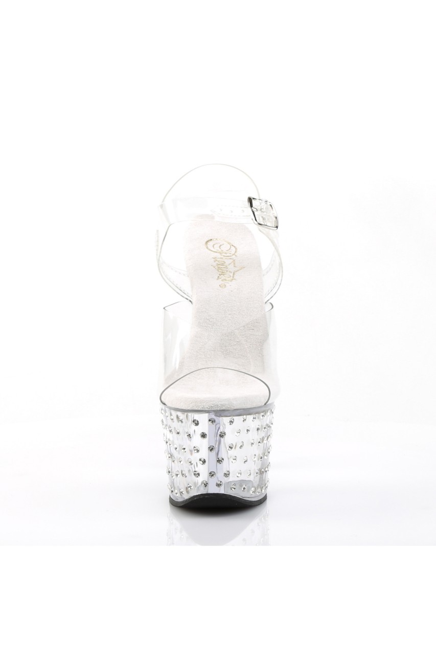 7″” (17.8cm) Heel, 2 3/4″” (7cm) Platform Ankle Strap Sandal Featuring Rhinestone Studded Bottom