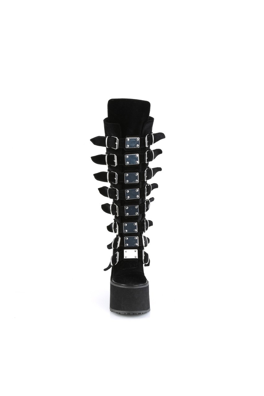 5 1/2″” (140mm) Platform Knee High Boot Featuring 8 Buckle Straps w/ Metal Plates at Center, Back Metal Zip Closure