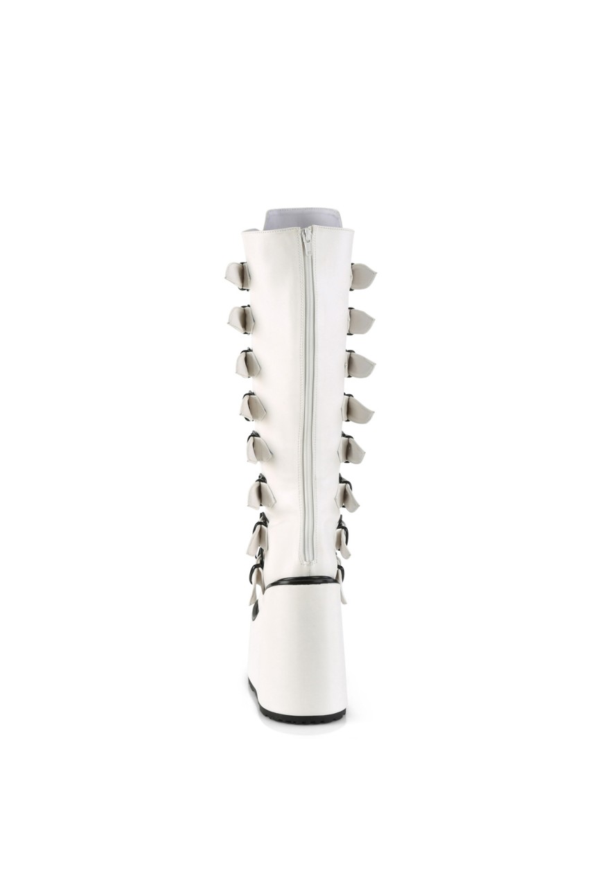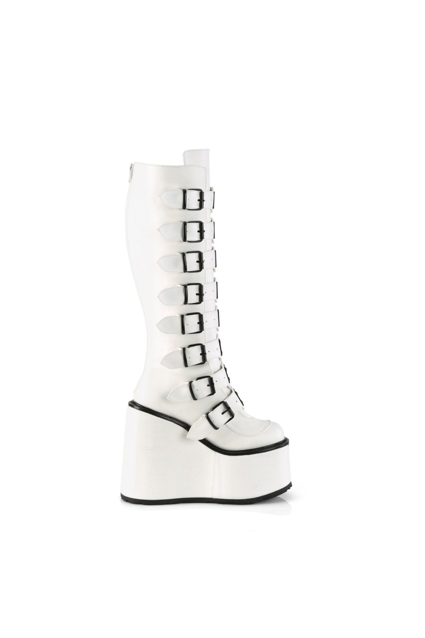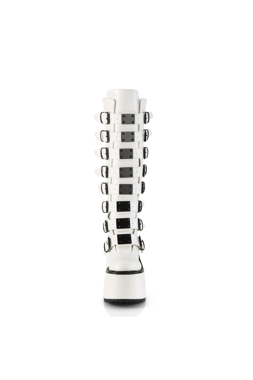5 1/2″” (140mm) Platform Knee High Boot Featuring 8 Buckle Straps w/ Metal Plates at Center, Back Metal Zip Closure