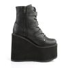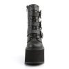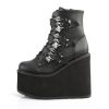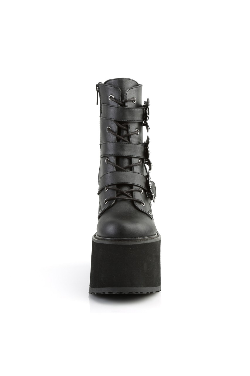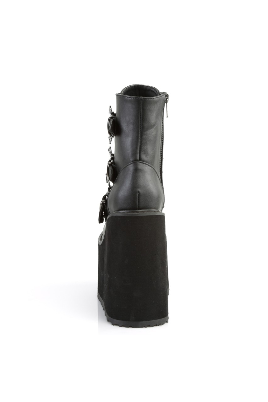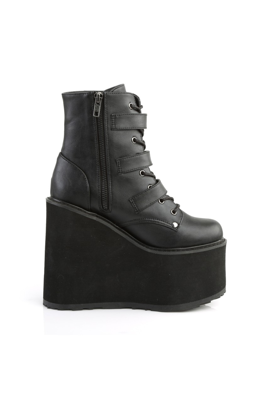 5 1/2″”(140mm) Wedge Platform Lace-Up Front Ankle Boot Featuring Triple Bat Buckle Straps, Metal Inner Side Zip Closure