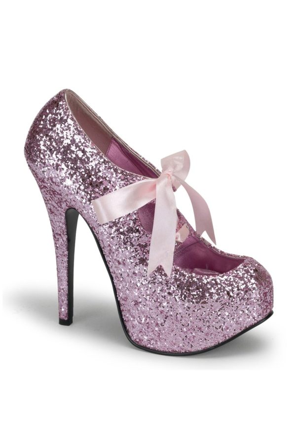 5 3/4″” (14.6cm) Heel, 1 3/4″” (4.5cm) Concealed Platform, Glitter with Satin Lace-up Ribbon Pump