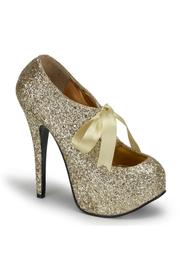 5 3/4″” (14.6cm) Heel, 1 3/4″” (4.5cm) Concealed Platform, Glitter with Satin Lace-up Ribbon Pump