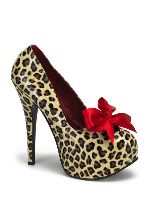 5 3/4″” (14.6cm) Heel, 1 3/4″” (4.5cm) Concealed Platform, Ribbon Bow Pump, Cheetah Print Faux Leather