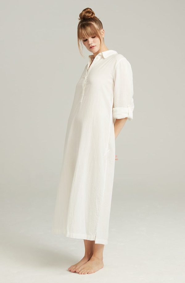 Discover effortless elegance in bed and beyond with this 100% organic cotton maxi shirt with chic side slits. Adorned with signature Nudea detailing, mother-of-pearl buttons and thigh-high side slits, this luxe silhouette will have you feeling oh-so-chic as you drift off to sleep. Side slit embroidered detailing Mother-of-pearl buttons Adjustable sleeve tabs Relaxed fit 100% natural Nudea sleepwear is crafted with fully natural materials from the fabrics right down to the threads. Every inch of these garments is 100% OEKO-TEX certified Cotton – even the labels. Crafted with 100% natural materials