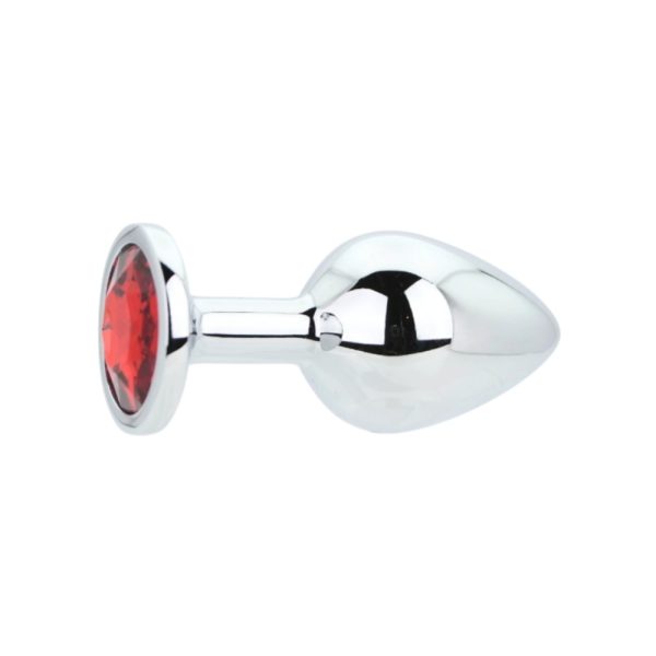 Toosh Silver Metal Butt Plug Medium Red Stone
