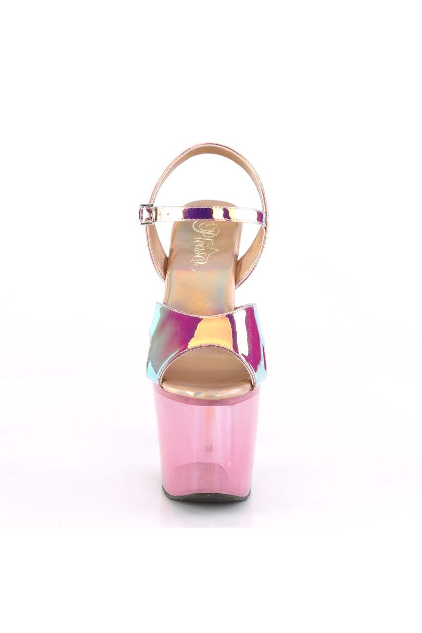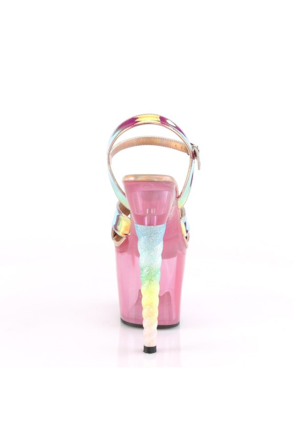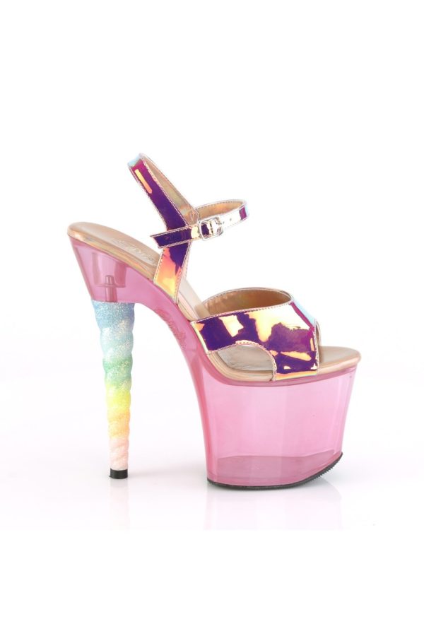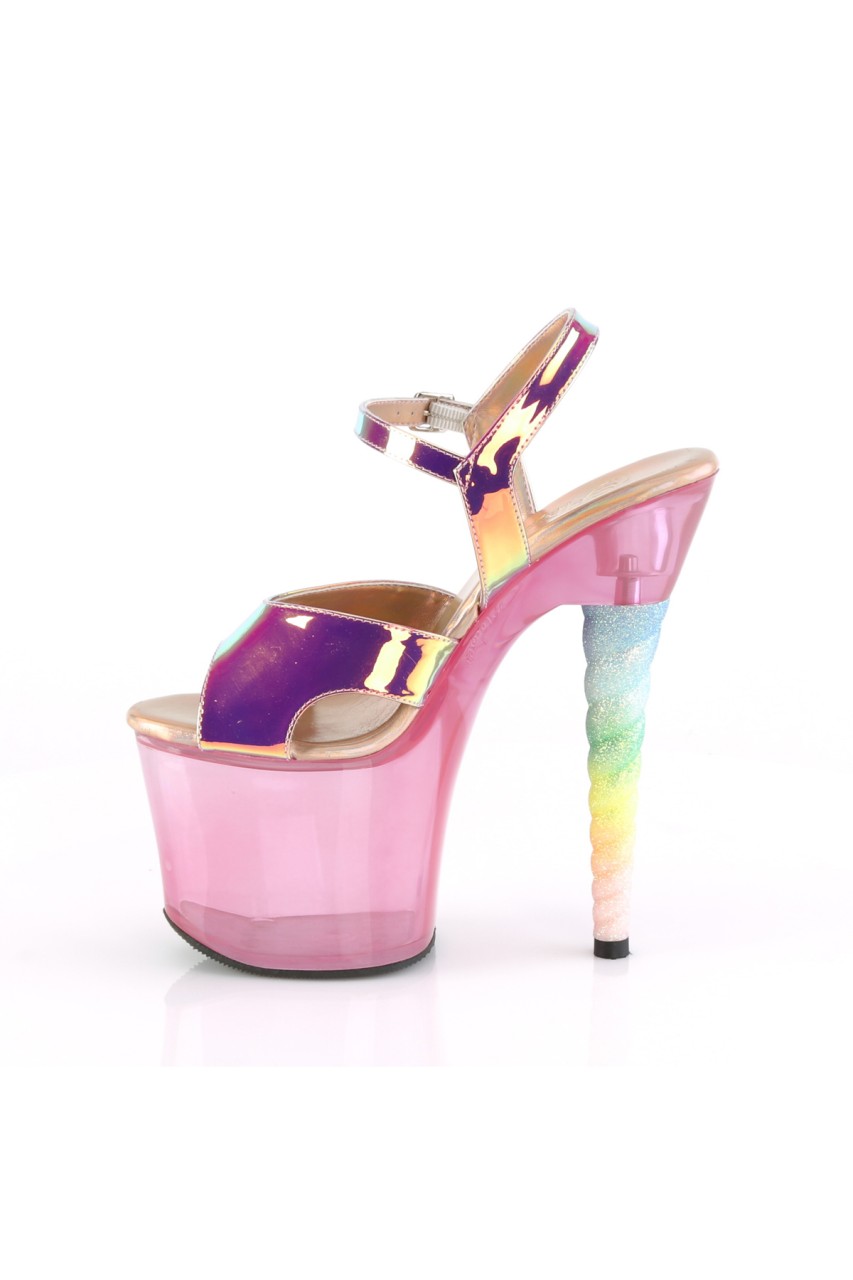 7″” (178mm) Heel, 3 1/4″” (83mm) Platform Ankle Strap Sandal Featuring Tinted Platform Bottom and Ombre Glitter Unicorn Heel