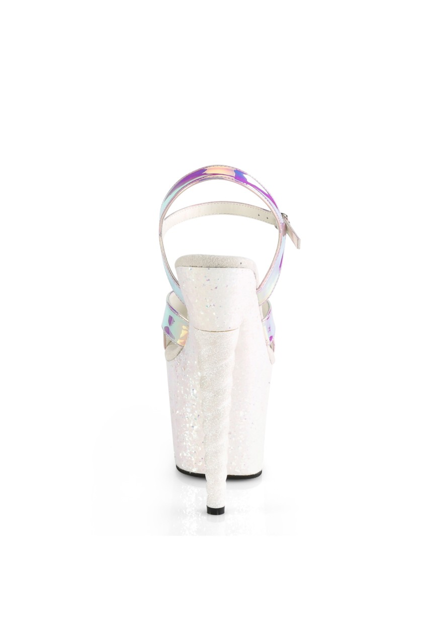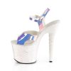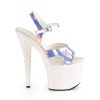 7″” (178mm) Heel, 3 1/4″” (83mm) Platform Ankle Strap Sandal Featuring Holographic Glitters on the Entire Platform Bottom
