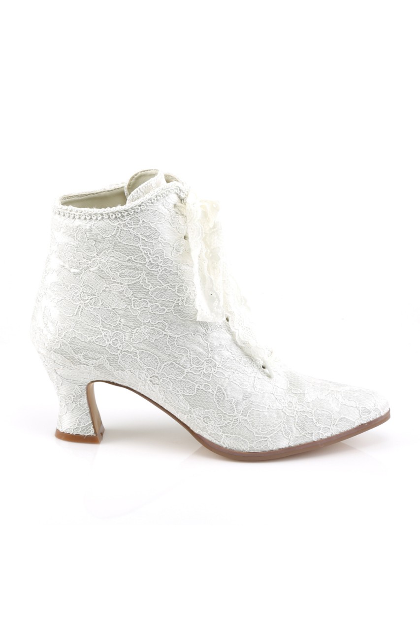 2 3/4″” (7cm) Flaired Heel Lace Up Lace Overlay Ankle Bootie with Ribbon Bow Tie
