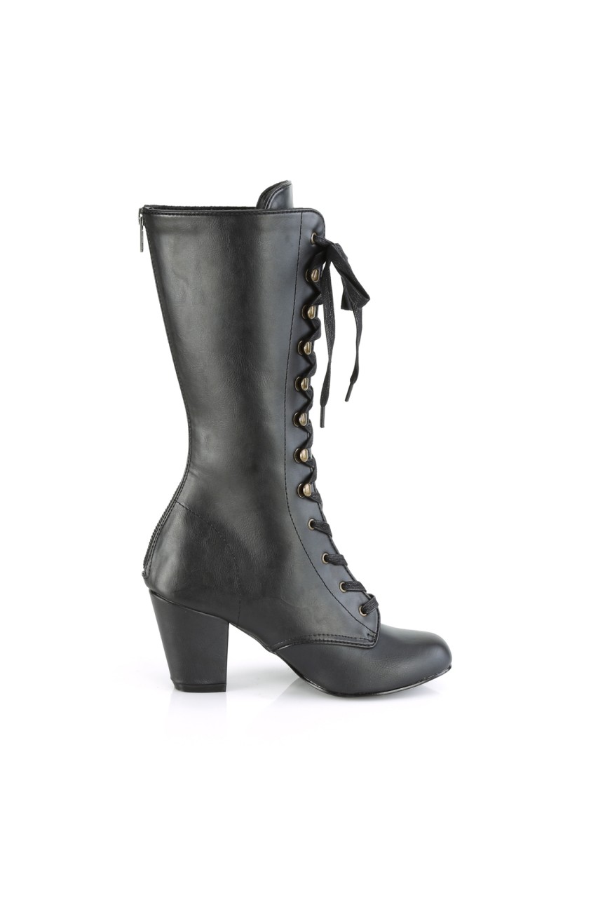 3″” (76mm) Block Heel Round Toe Lace-Up Mid-Calf Boot
