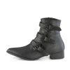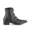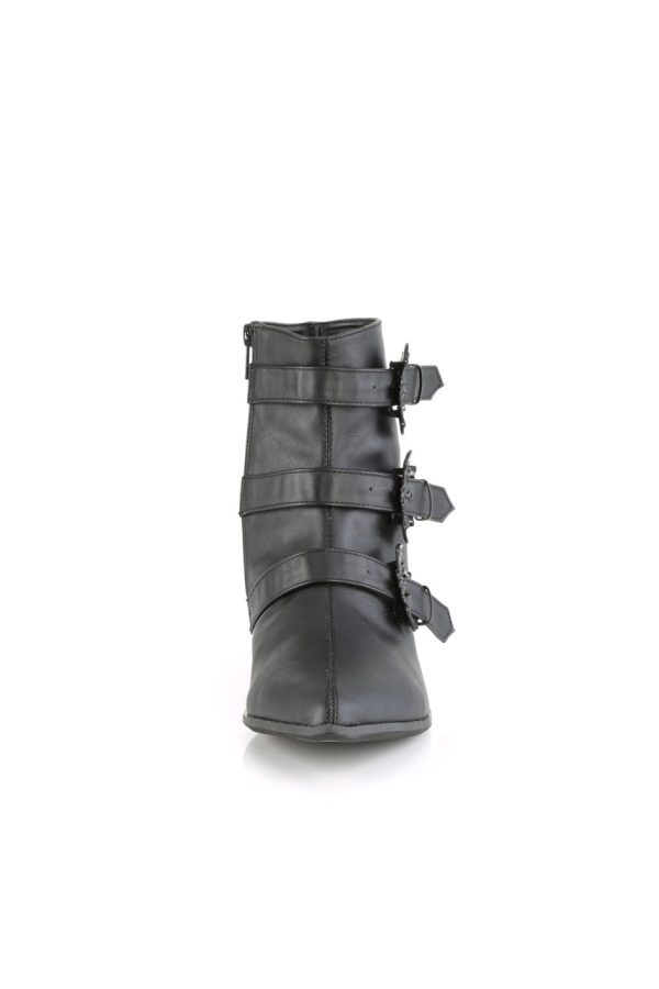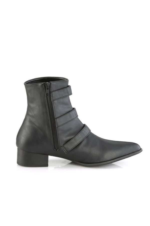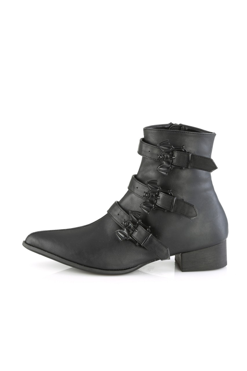 1 1/2″” (38mm) Block Heel Pointed Toe Winklepicker Style Ankle Boot, Featuring Triple Bat Buckle Straps, Inner Side Zip Closure