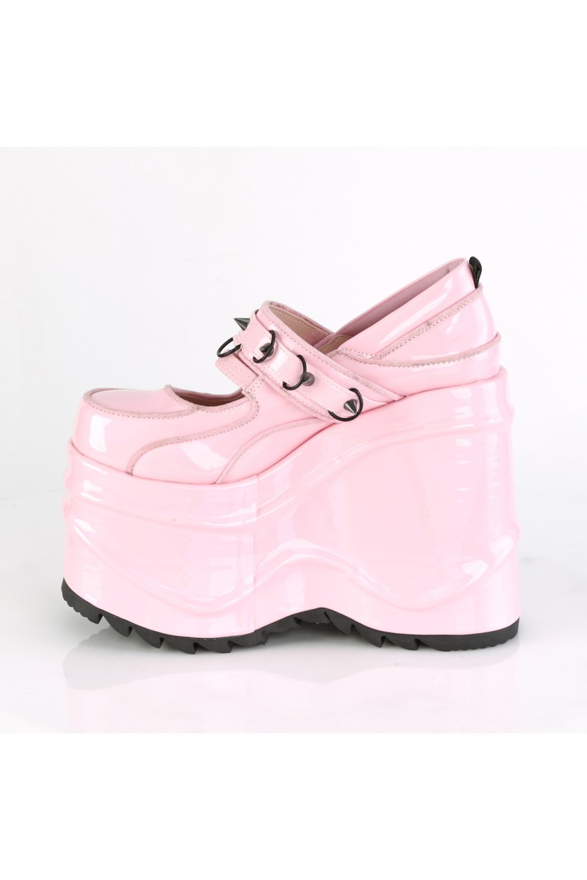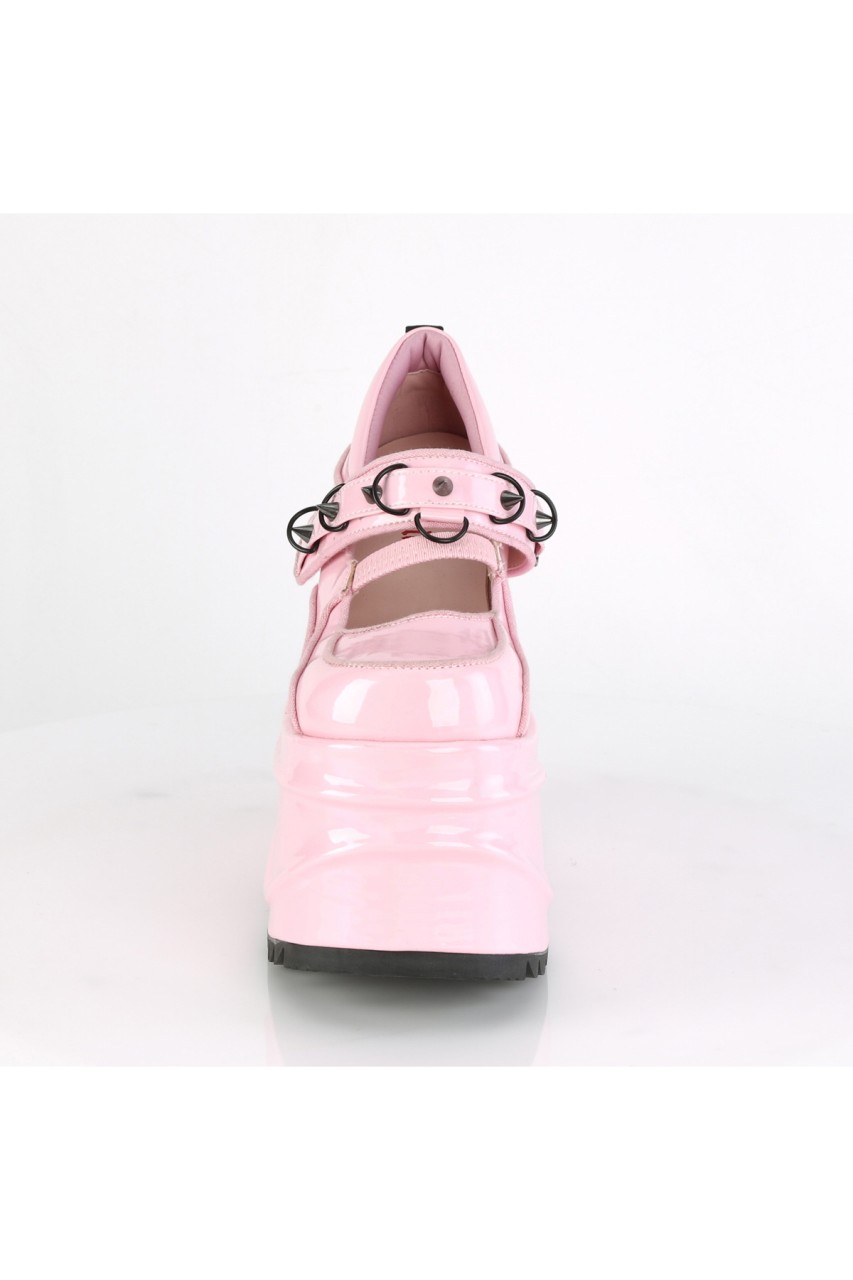 6″” (152mm) Wedge Platform Maryjane Featuring Elastic Instep Strap & Hook & Loop Strap W/ Cone Spike Stud & D-Ring Details