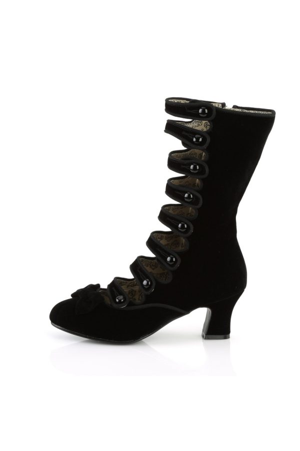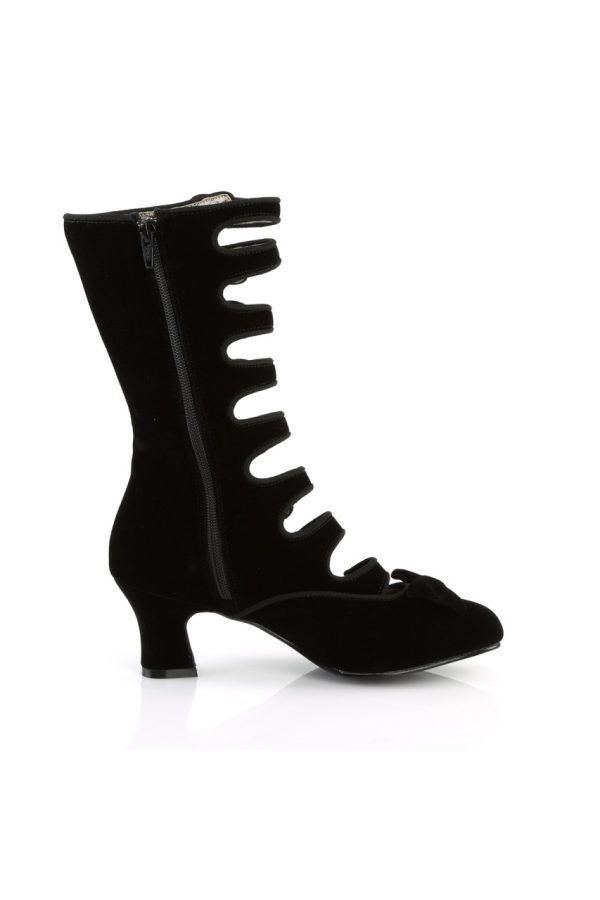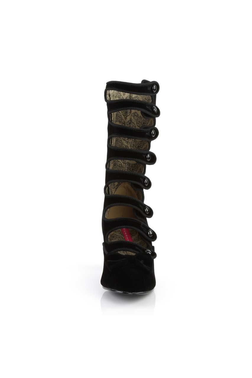 2 1/2″” (6.4cm) Heel, 8 Straps with Elastic Button Details Velvet Calf Boot Full Inner Side Zip Closure