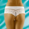 Cantata is a gorgeous design which has a combined shorts/thong style and is made from extremely soft to touch microfibre material. The top features an elasticated band of microfibre which is delicately edged with complementary stitching. Below is a transparent tulle insert which gives the design a little lightness. A charming lace panel is followed underneath this which at the back sits on the bottom giving a shorts look. However the crotch area is indeed in a thong style and provided is a cotton gusset. So if you’re into a mixture of shorts and thongs then this is for you! Immaculate stitching and incredibly soft feel. Available in black and white both colours can be ordered separately on the website. This item arrives packaged in a branded Wolbar box presenting an image of the product.