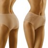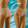 Eco-Ma is a wonderful pair of briefs made from high quality cotton. The front of the brief features two panels at either side with an exceptional stripe design including a mixture of sheer fabric and cotton. This makes the panels semi-transparent which are beautifully finished at the edges. The waistband is elasticated and super stretchy making this brief exceptionally comfortable for women with a large difference in waist circumference. These panels are delicately overlocked at the seams on the inside. Inside is a cotton gusset which is sewn into the brief. The back of the brief is completely plain. Smooth feel. Available in white beige and black and can all be ordered separately on the website. This item arrives packaged in a branded Wolbar box presenting an image of the product.
