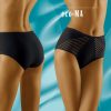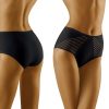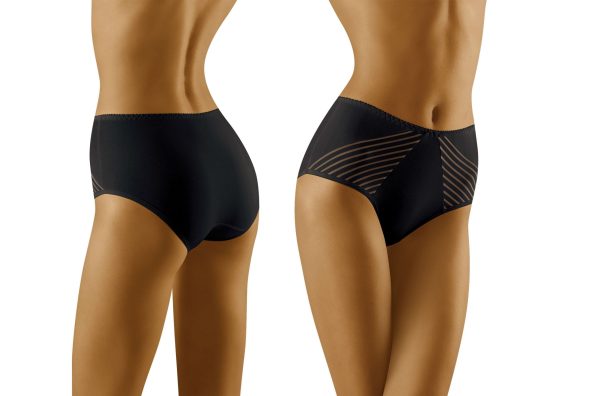 Eco-Ma is a wonderful pair of briefs made from high quality cotton. The front of the brief features two panels at either side with an exceptional stripe design including a mixture of sheer fabric and cotton. This makes the panels semi-transparent which are beautifully finished at the edges. The waistband is elasticated and super stretchy making this brief exceptionally comfortable for women with a large difference in waist circumference. These panels are delicately overlocked at the seams on the inside. Inside is a cotton gusset which is sewn into the brief. The back of the brief is completely plain. Smooth feel. Available in white beige and black and can all be ordered separately on the website. This item arrives packaged in a branded Wolbar box presenting an image of the product.