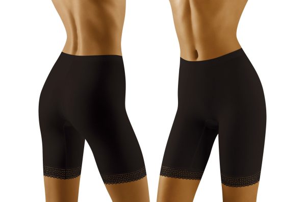 Rona is a lovely pair of shaping shorts with an elasticated micro-adjustable waistband and elasticated lace belt decoration at the bottom of the shorts. The front of the shorts are completely plain and the seams are delicately sewn which can also be seen on the outer side meaning there’s slight patterning on the seams. Inside is a cotton gusset which is sewn into the shorts. Gentle and soft knitwear prevents irritations and skin irritations in sensitive areas for maximum comfort. The specially selected cup shape adds an extra silhouette on the figure. Available in white beige and black and can all be ordered separately on the website. This item arrives packaged in a branded Wolbar box presenting an image of the product.