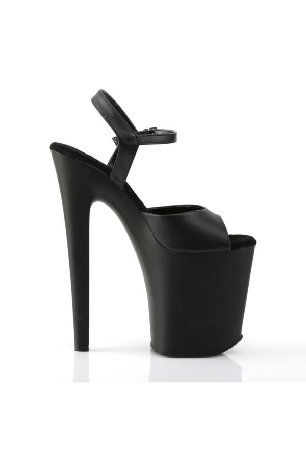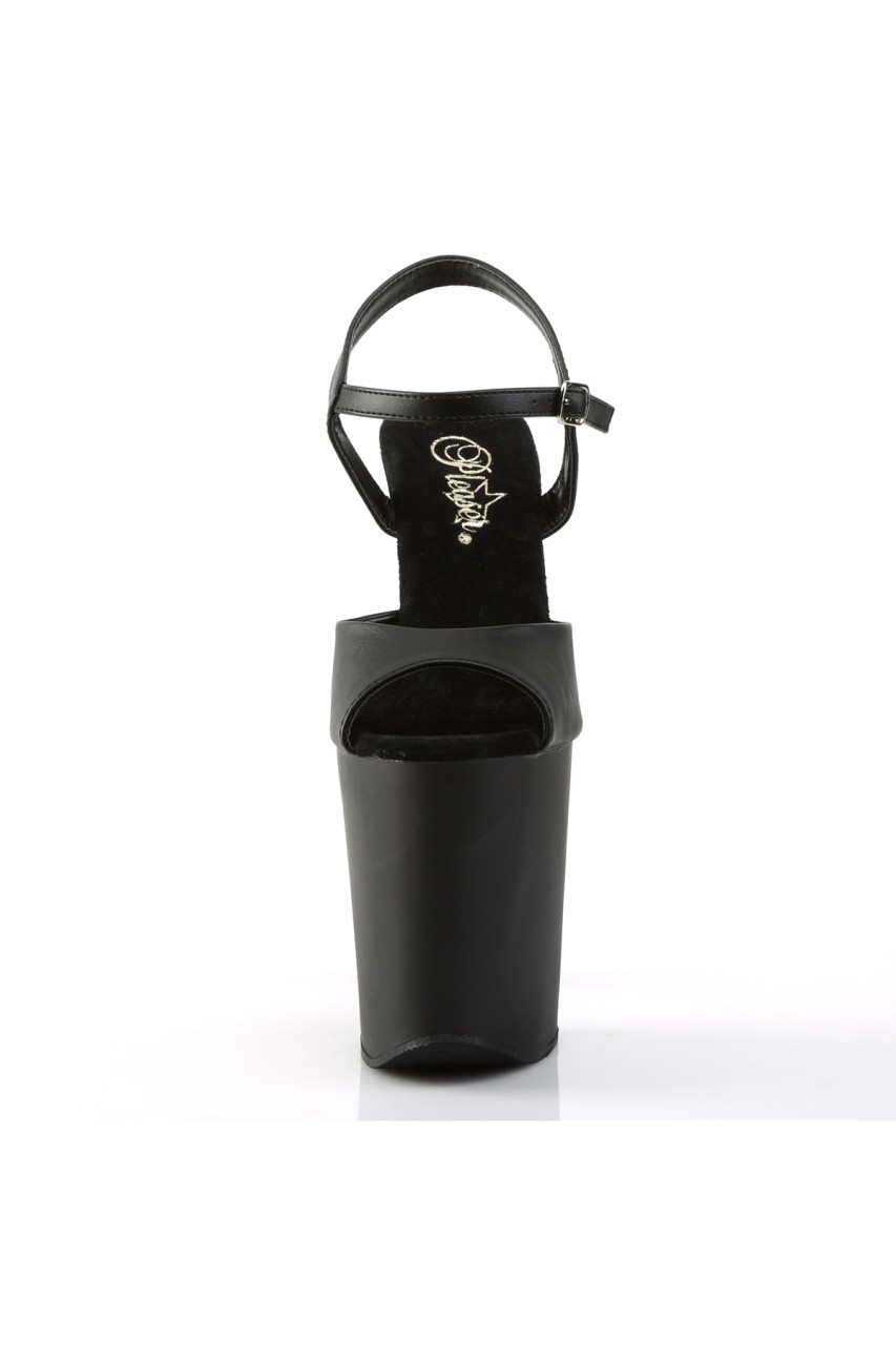 8″” (20.3cm) Heel, 4″” (10.2cm) Platform Ankle Strap Peep Toe Sandal, Black Faux Leather