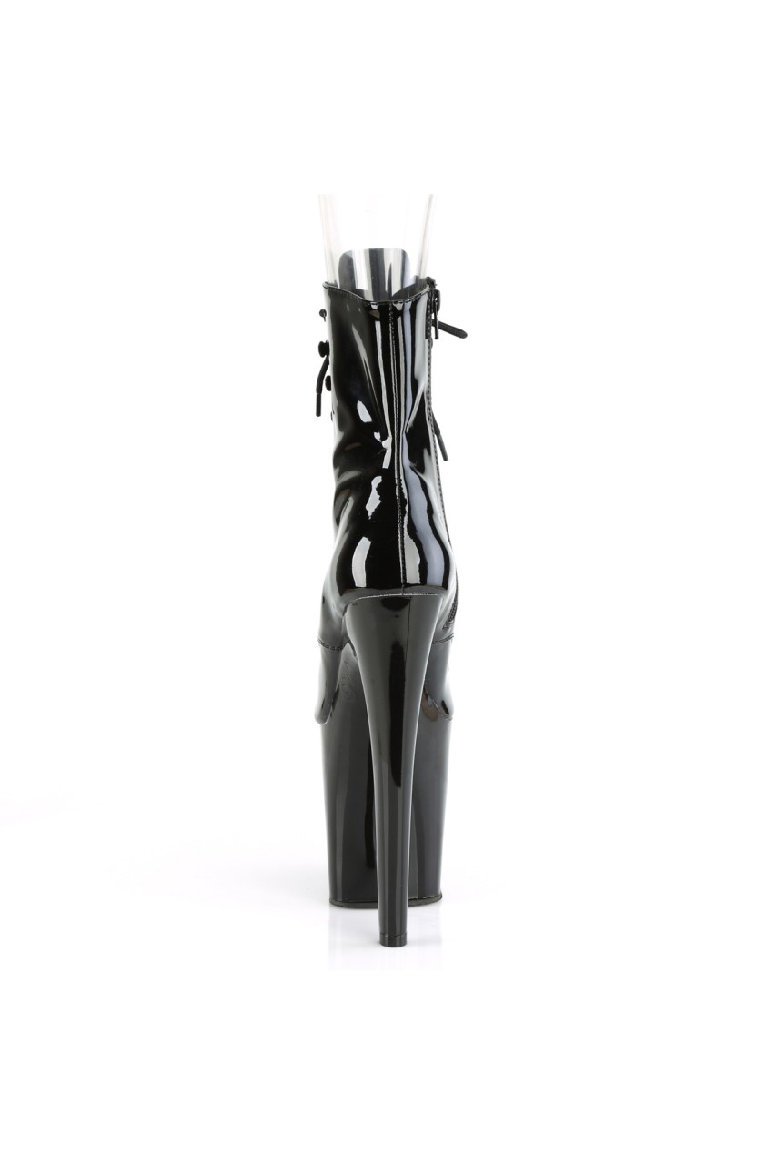 8″” (200mm) Heel, 4″” (100mm) Platform Peep Toe Lace-Up Front Ankle Boot, Inner Side Zip Closure