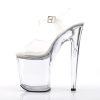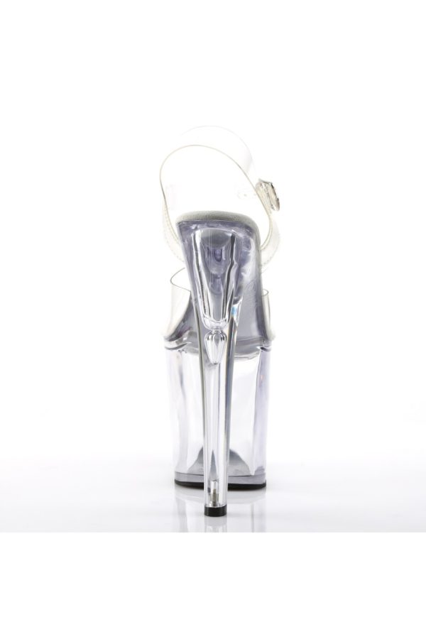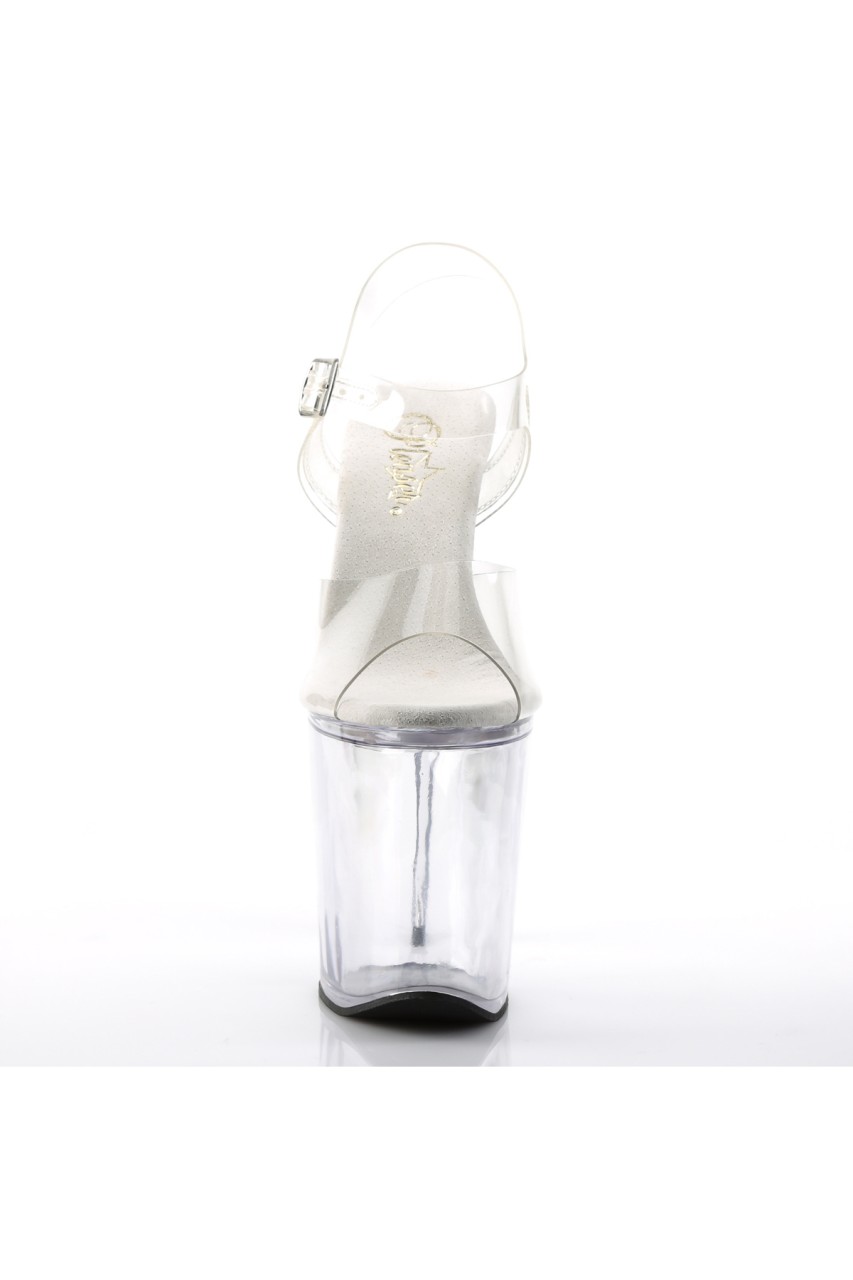 8″” (20.3cm) Spike Heel, 4″” (10.2cm) Platform Ankle Strap Peep Toe Sandal, Clear
