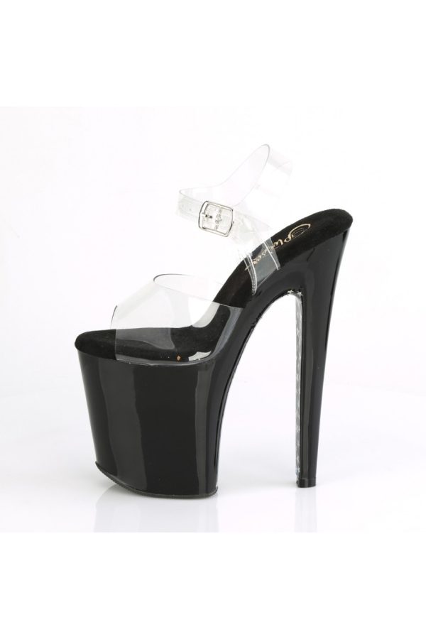 8″” (200mm) Heel, 4″” (100mm) Platform Ankle Strap Sandal w/Contrast Holographic Stars on the Platform Underside & Front of Heel