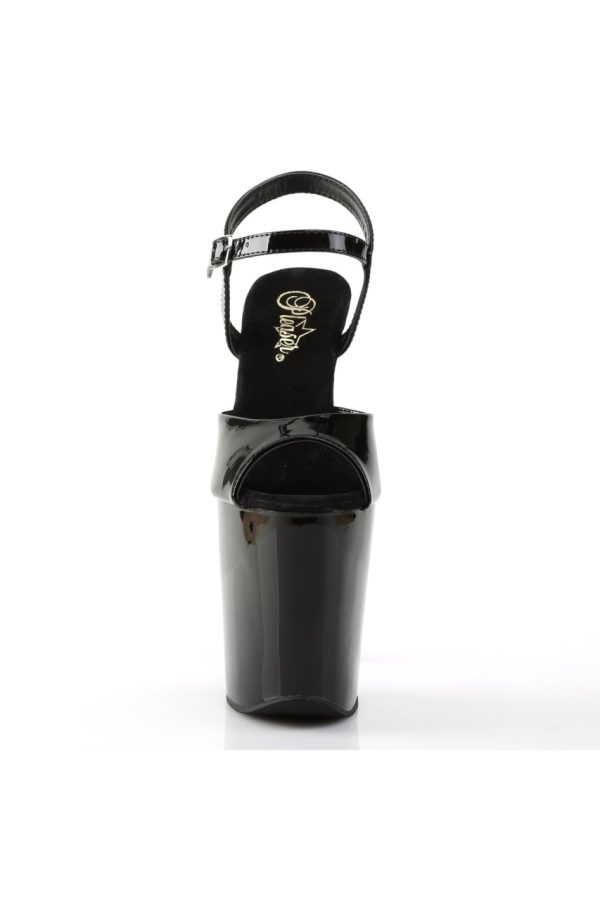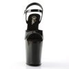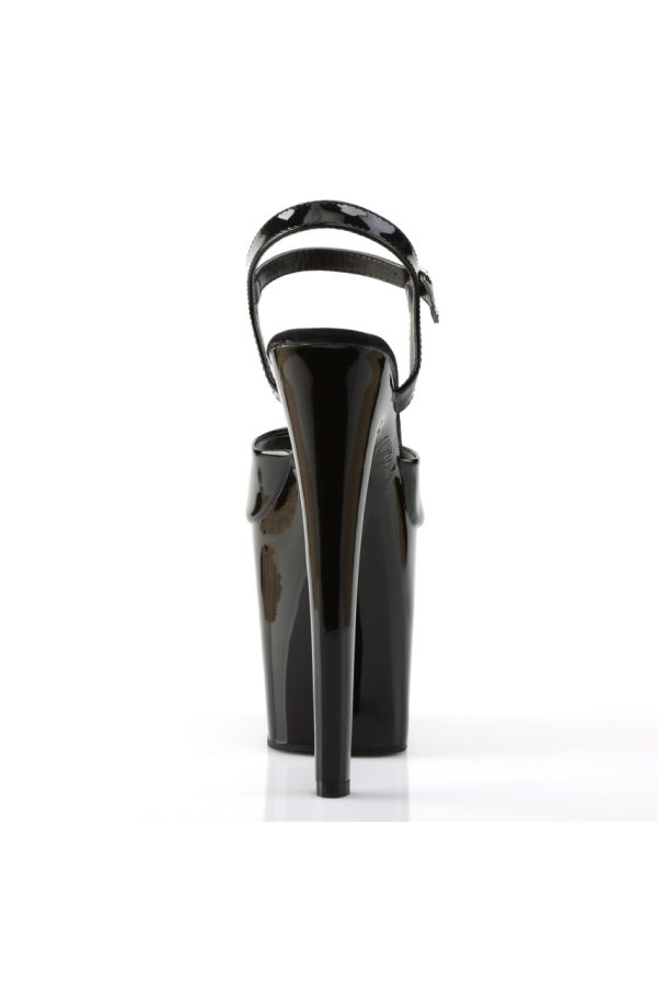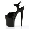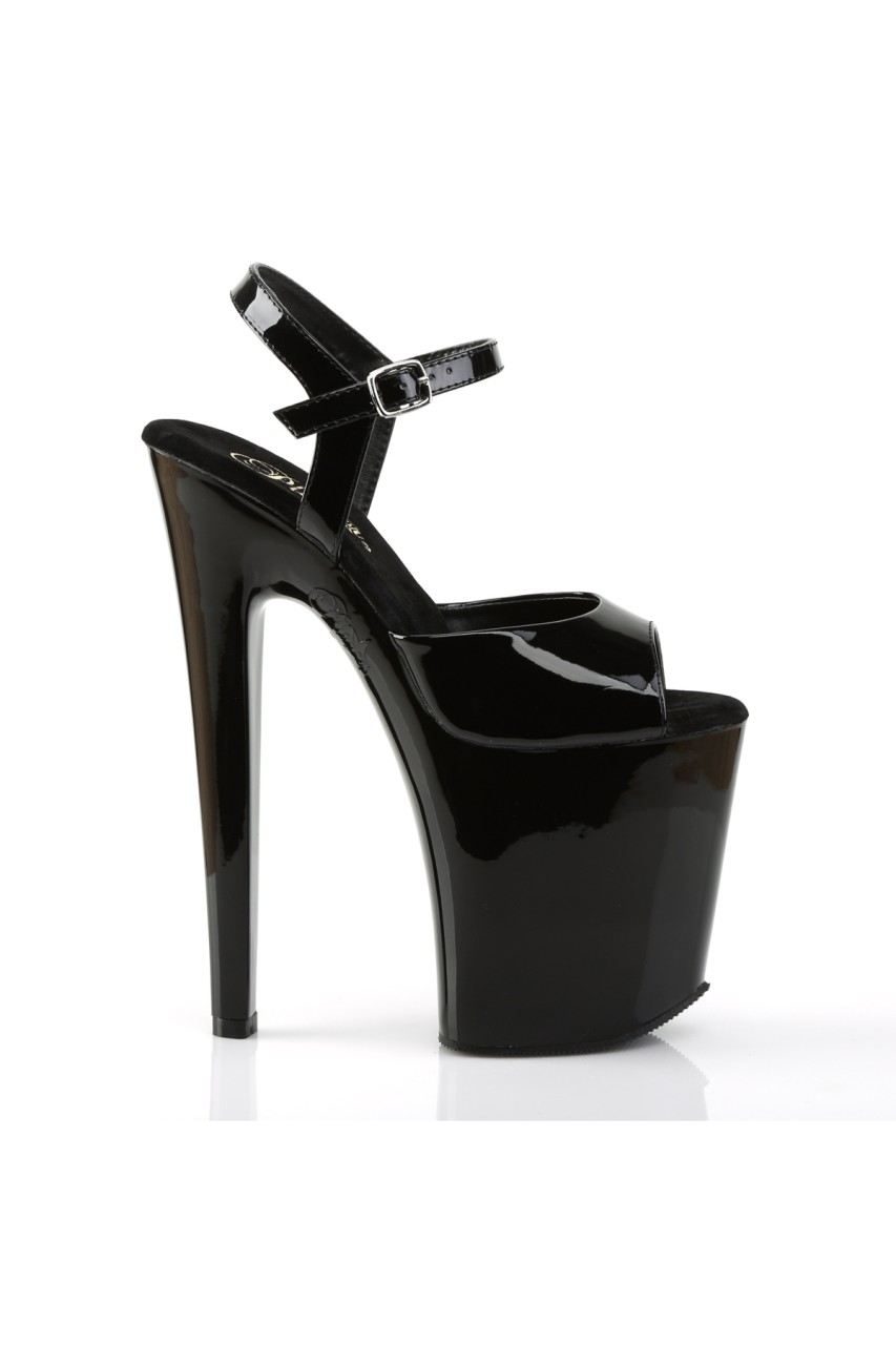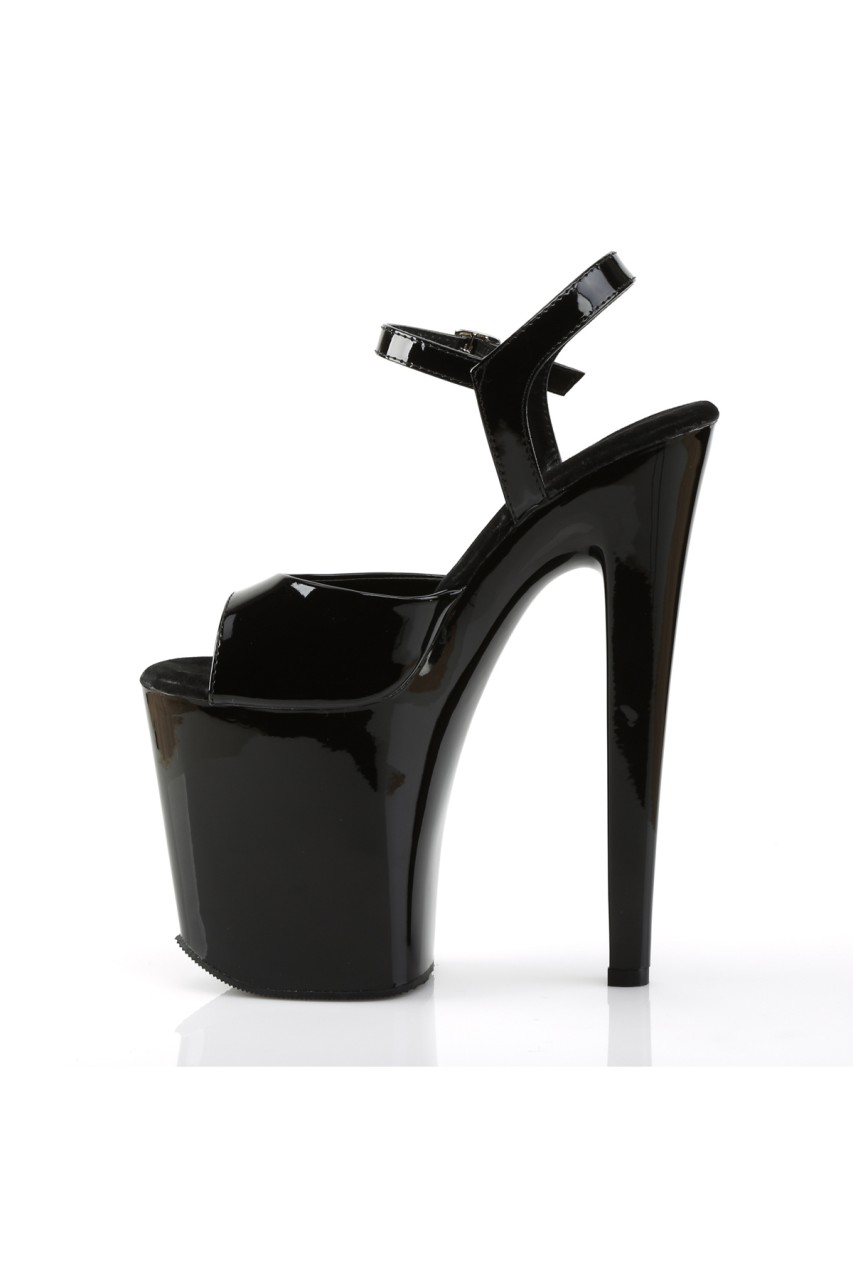 8″” (20.3cm) Heel, 4″” (10.2cm) Platform Ankle Strap Peep Toe Sandal, Black Patent