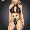 A black lacey strappy black halter neck teddy. Fully adjustable to ensure the perfect fit. Arrives packaged in a Yesx satin bag.