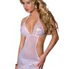Delicate and sexy babydoll made of soft material in white and edged with beautiful black floral embroidery. Item comes beautifully boxed. G-string included.
